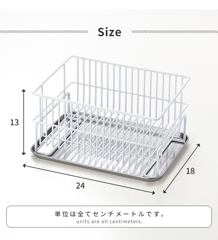 | [水切りラック本体]幅24×奥行18×高さ13cm [トレー]幅25×奥行18.5×高さ1cm |