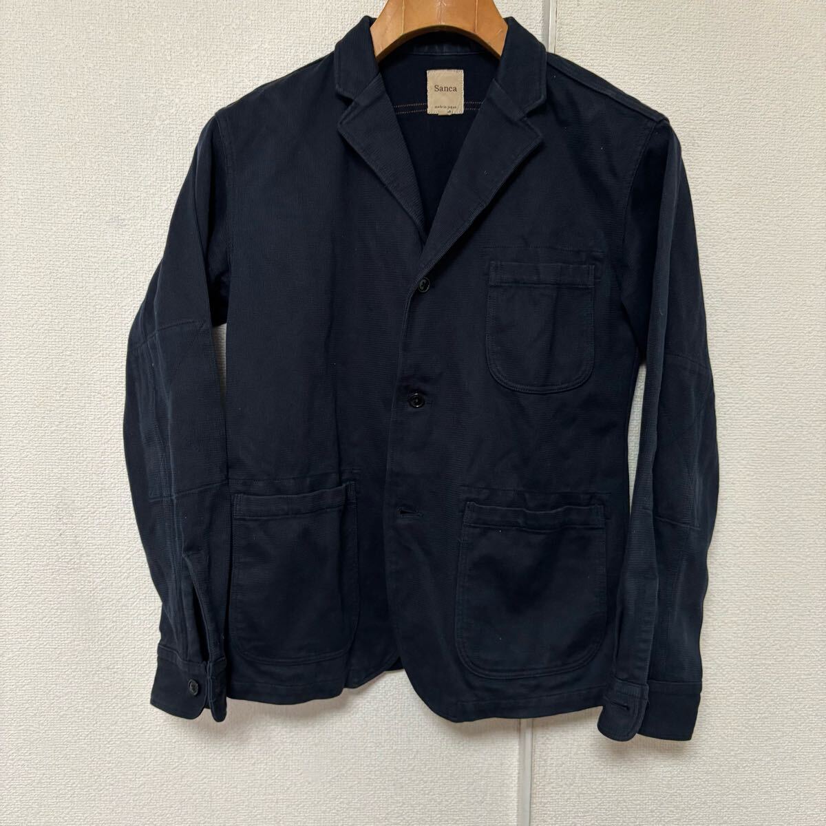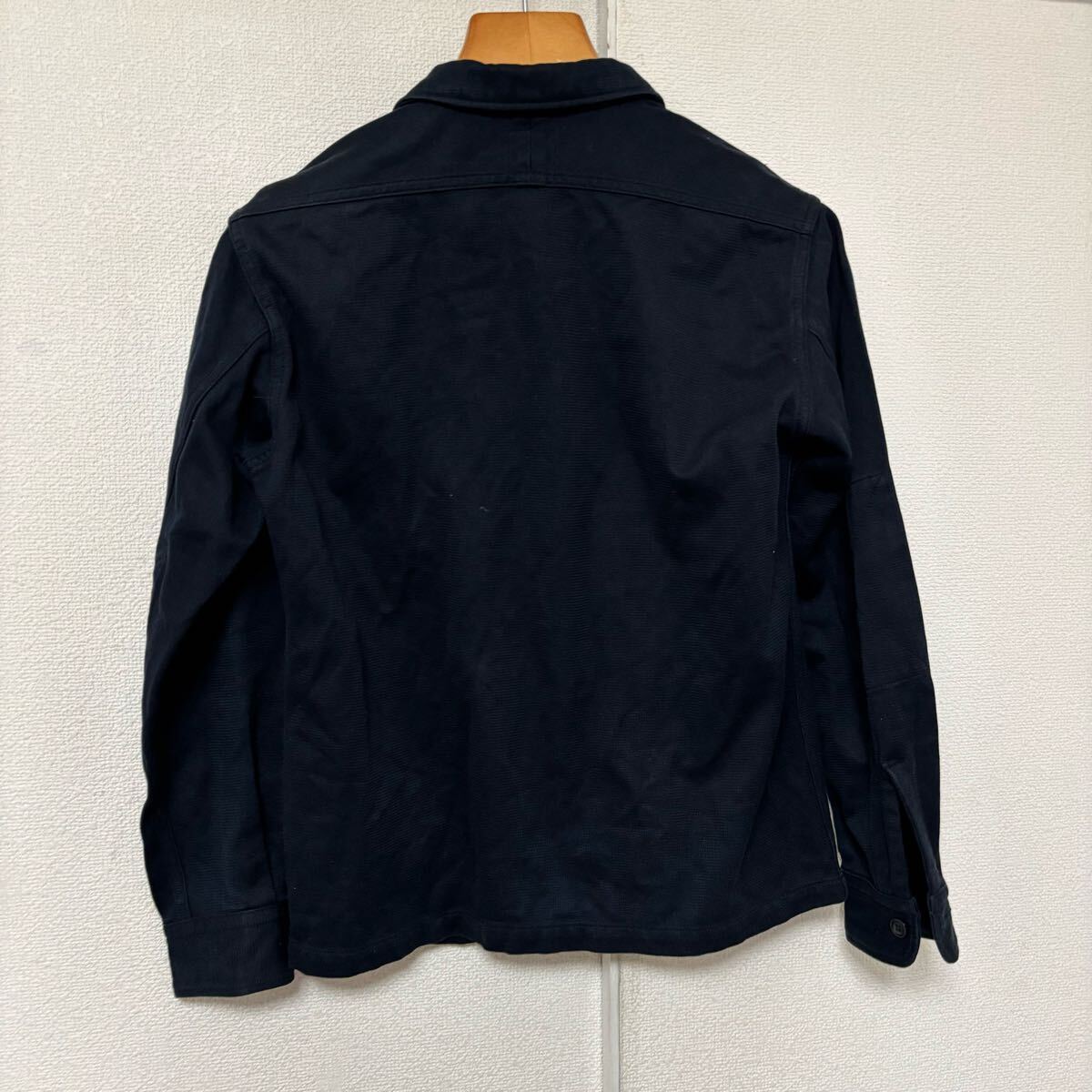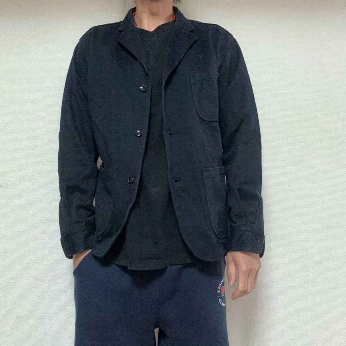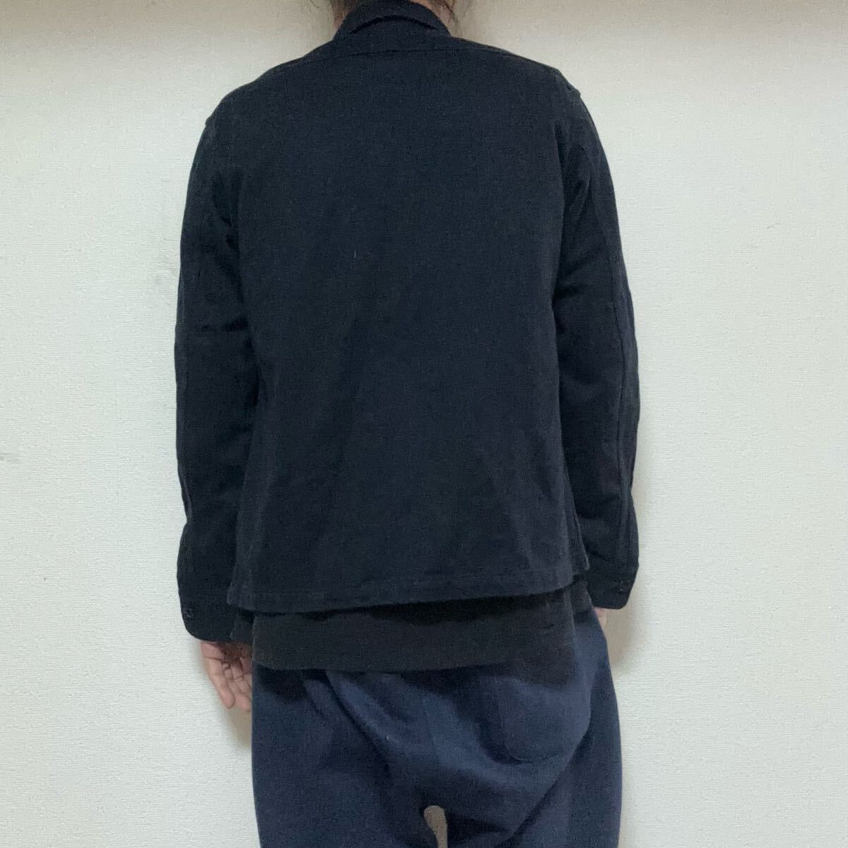 ラッセル編みで表情があり硬めのニットの様なストレッチ感があり着やすくテーラードジャケットのフロントですがアームホールはシャツの様なミックス感あるデザインが面白い一枚です。