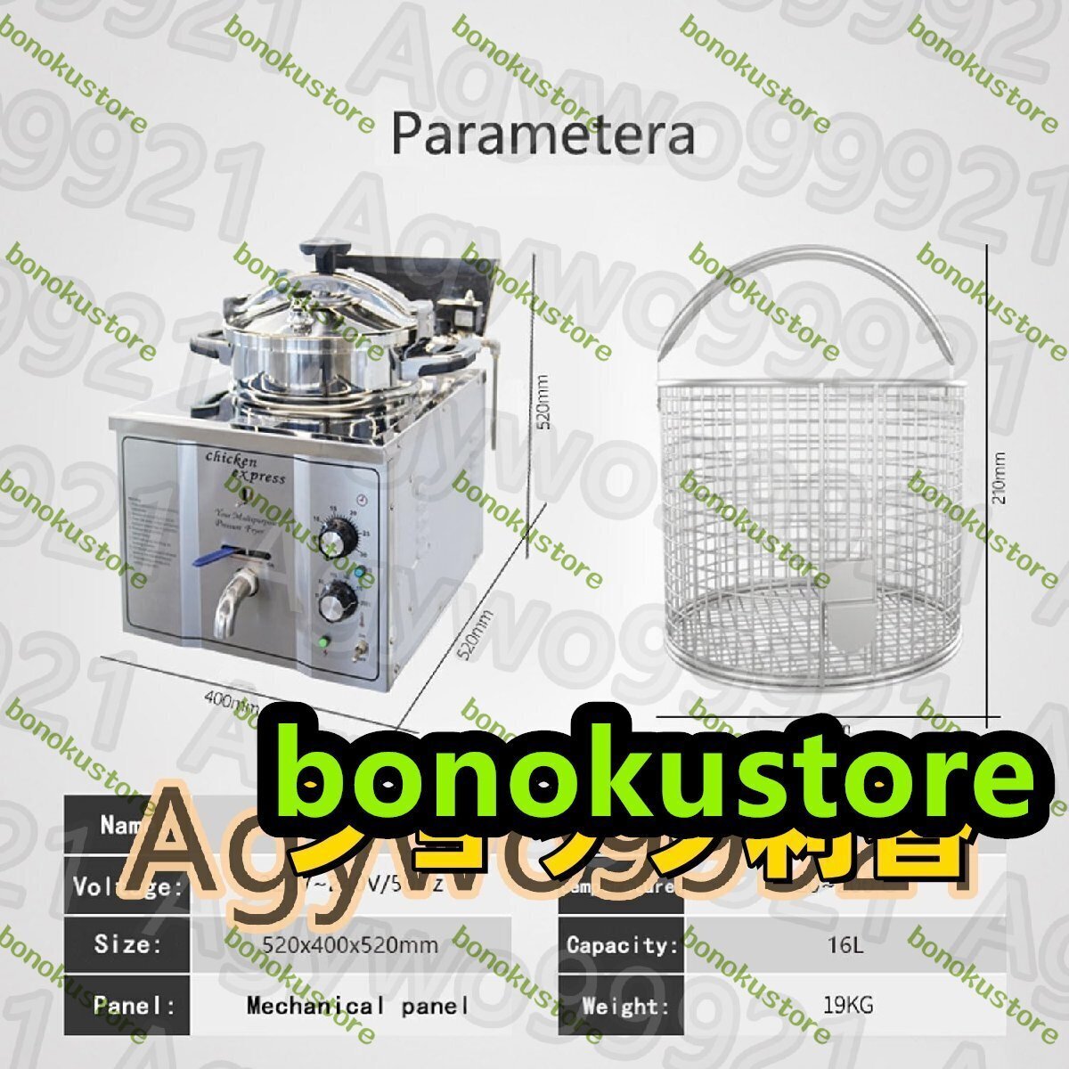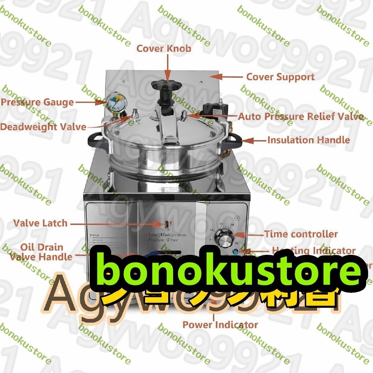 3KW 業務用ディープフライヤー、16L ステンレス鋼カウンタートップ電気圧力エアフライヤー、50-200℃&0-30 分タイマー付き、チャイルドロック保護、フライドポテト、手羽先、ポテトチップス用