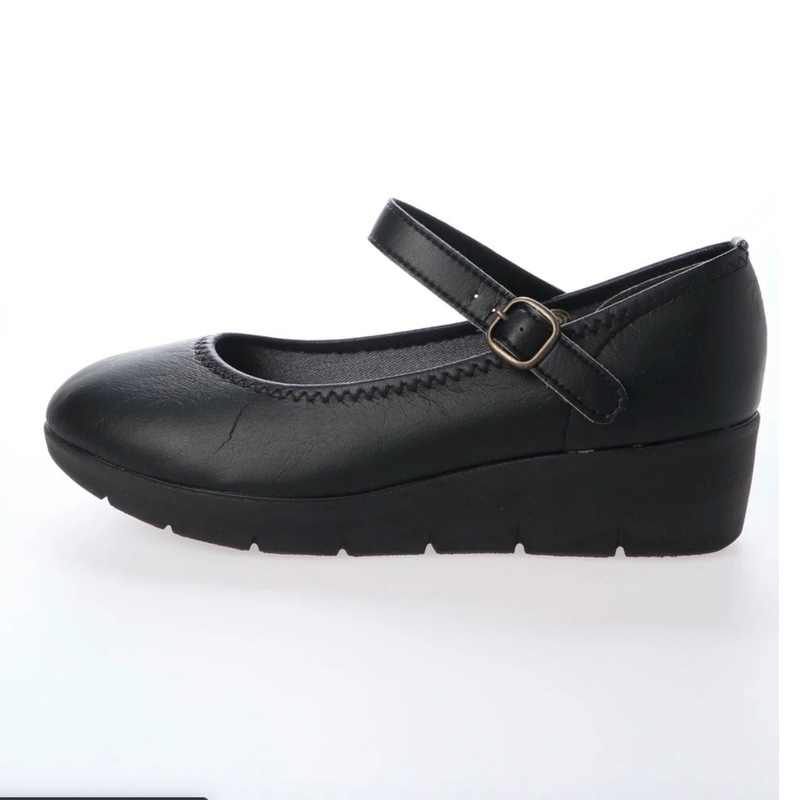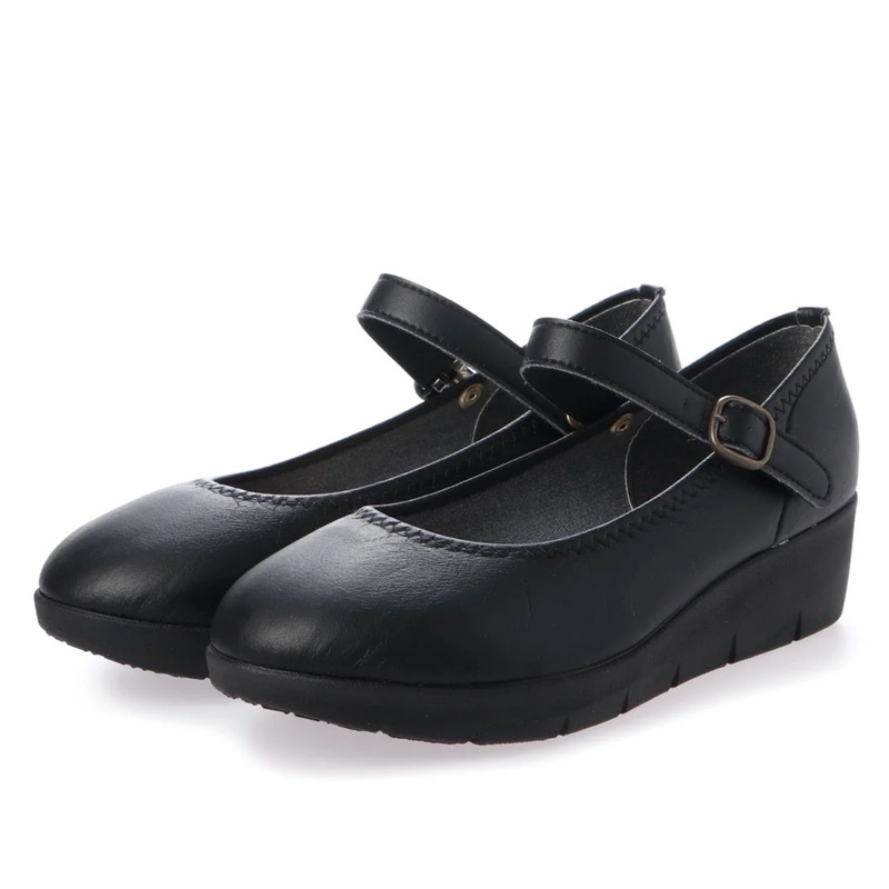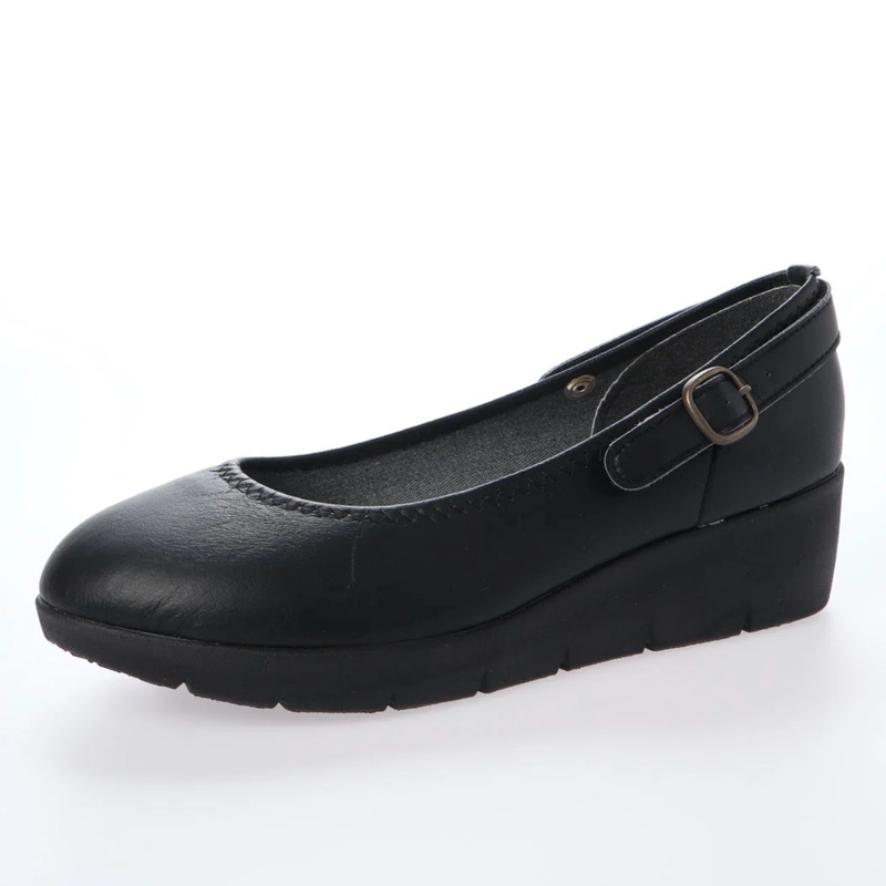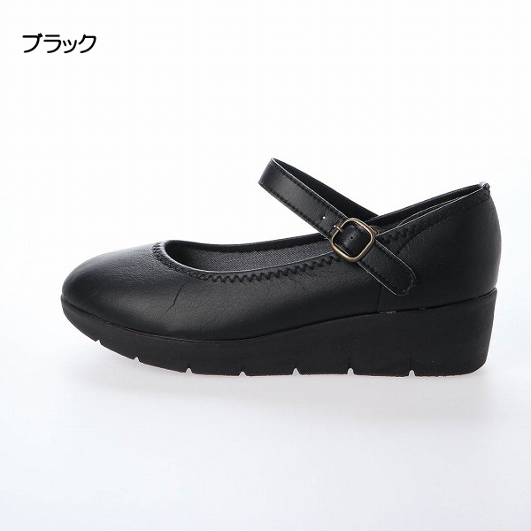 36lk 全国送料無料 パンプス 4E 日本製 厚底 ワンストラップ 大きいサイズ 痛くない ウェッジソール 幅広 走れるパンプス 黒 ロリータ