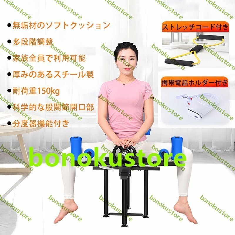 レッグストレッチャー 開脚マシーン 開脚ストレッチャー 0-230度 耐荷重150kg 股関節 ストレッチ 開脚運動 カエルの股関節を開くエクササイズ 初心者、ヨガ、フィットネス、ダンス愛好家向け 弾性リングと携帯電話ホルダー付き