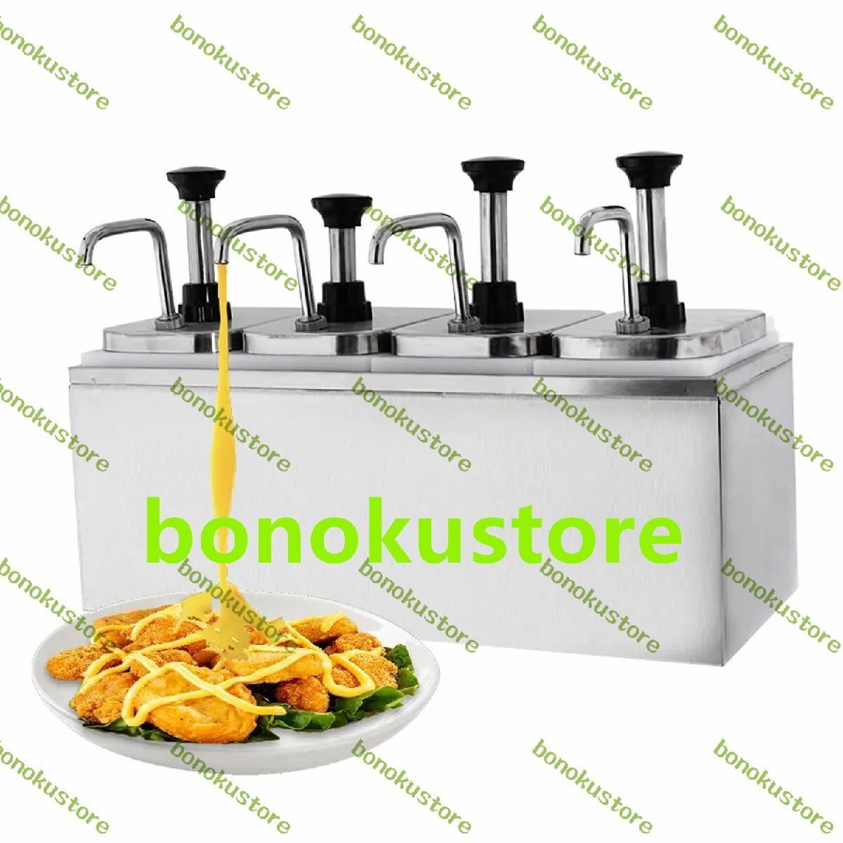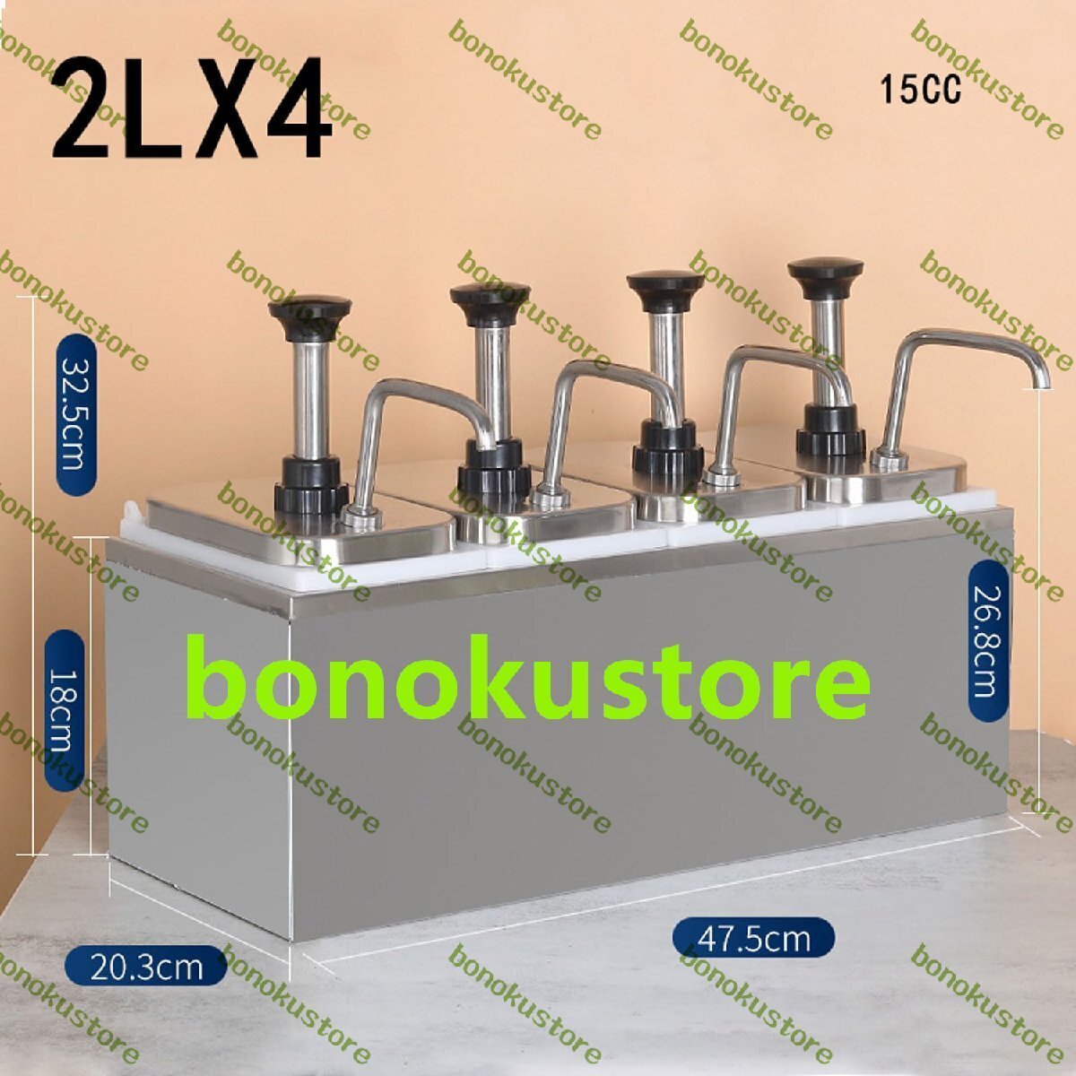 業務用ソースポンプ、2Lx4 デスクトップ取り外し可能なステンレス鋼調味料ディスペンサー、15cc 出口付き、クイックリバウンド & 標準定量、サラダドレッシング、ケチャップ、ジャム用