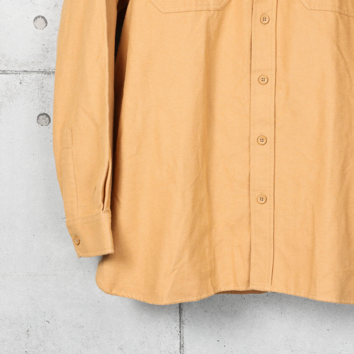 【ブランド】 L.L.Bean / エルエルビーン 【アイテム】 シャモアクロス ワークシャツ 【商品説明】 アメリカで購入しました、L.L.Beanのシャモアクロス素材が使用されたワークシャツになります。 【カラー】 マスタード 【コンディション】 使用に伴う色落ちや擦れなどがあります。 【サイズ】 サイズ:XL-R 身幅:66cm 肩幅:54cm 着丈:84cm 袖丈:67cm | |||