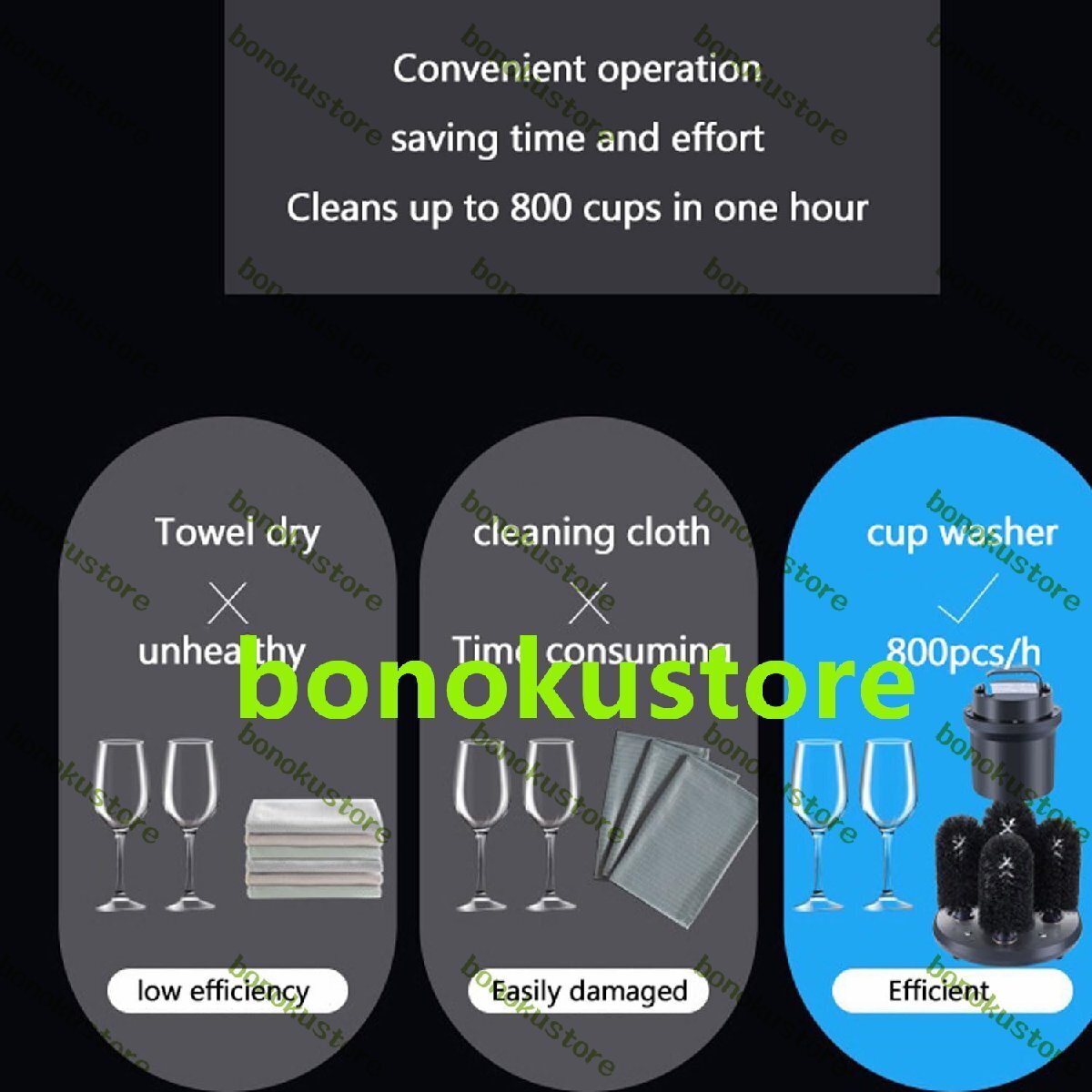 業務用電気カップウォッシャー、800カップ/H 5ブラシ電気ガラスウォッシャー、過熱保護機能付き、バー、キッチン、ホテル、パーティー用の防水ワイングラスクリーナー
