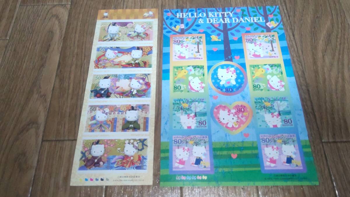 89【未使用】ハローキティ 切手シート2枚セット 50円切手 80円切手 ダニエル グリーティング切手 着物 送料無料