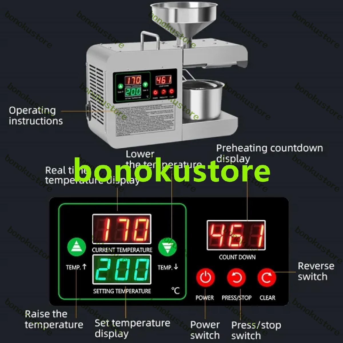 ホット/コールドオイルプレス機、820W家庭用ステンレス鋼電動オイルエクストラクター、インテリジェント制御付き、デスクトップ種子オイルプレス、お手入れ簡単、温度調節可能40-240℃