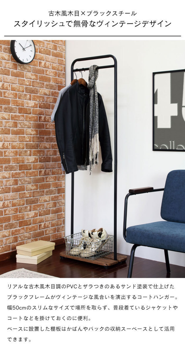 商品名: | コートハンガー 幅50 奥行33 高さ160 ハンガーラック 棚付き 洋服掛け ワードローブ クローゼット 玄関 リビング 衣類 収納 アイアン |