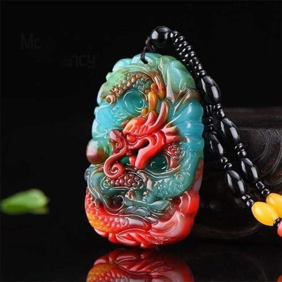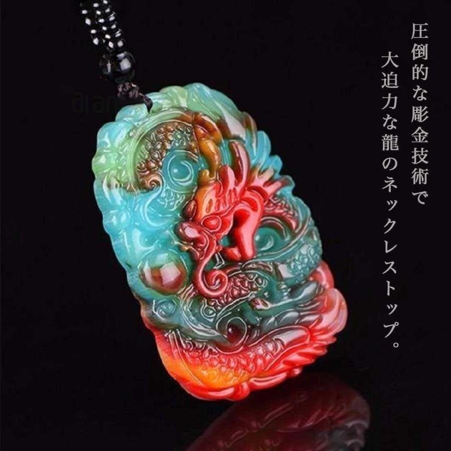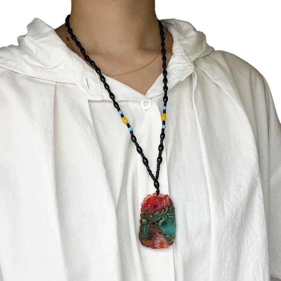 ネックレス 朱色龍 七色の石 数珠 ドラゴン 龍 アクセサリー メンズ レディース ジュエリー スタイル お洒落アイテム ヒップホップ