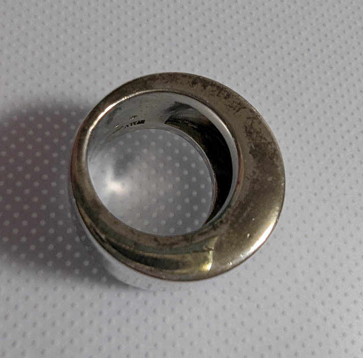 丸いリングはサイズ9号、ずっしりとごつい感じのリングです。
