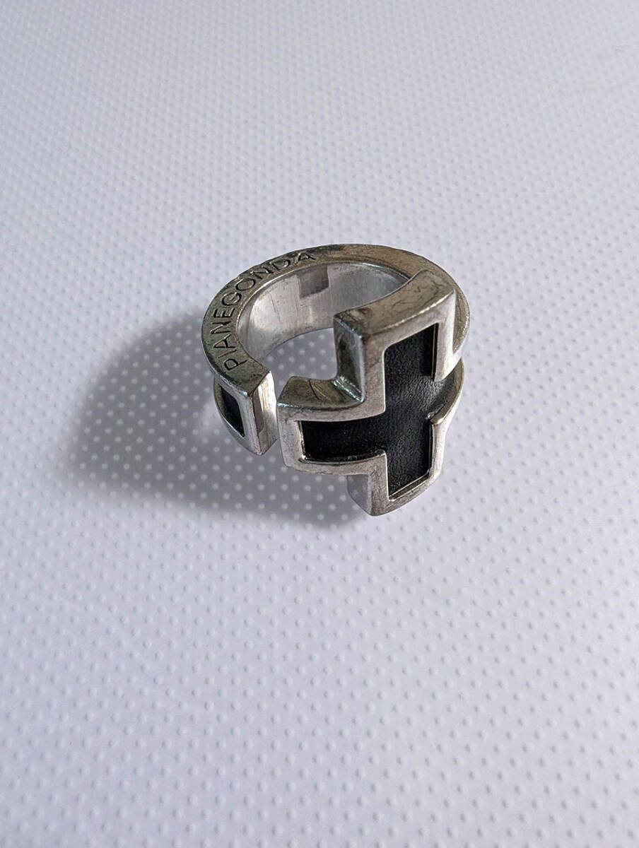 十字のリングはサイズ11号、シルバーに革が貼られています。