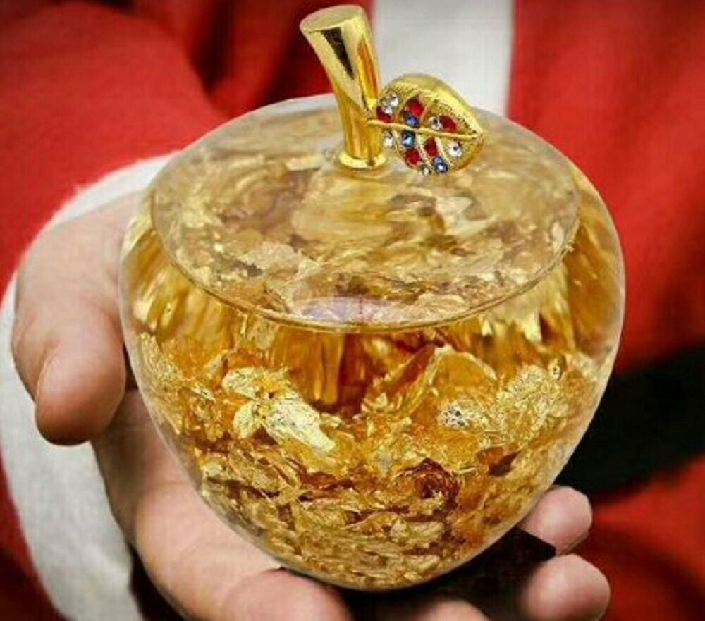 このリンゴはゴールドメッキを贅沢に水の上に浮かべた豪華なオブジェですので、