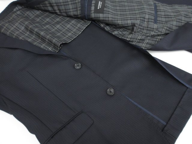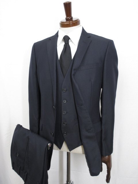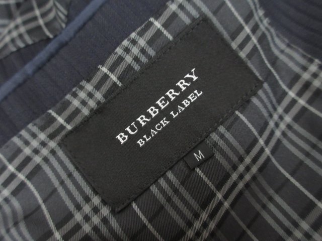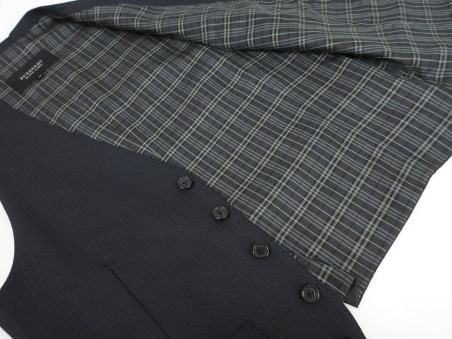 極美品【バーバリーブラックレーベル 】D1E22-301-29 2ボタン 3ピーススーツ (メンズ) M ネイビー系 ストライプ柄 光沢感 ◯32RMS0927