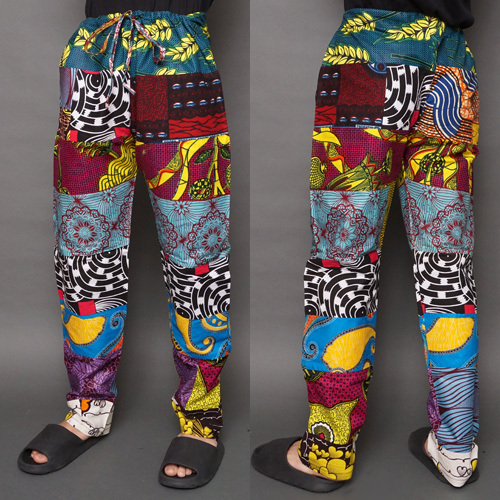 コットンのアフリカンワックス(パーニュ)を使用したブルキナファソのパッチワークパンツです。