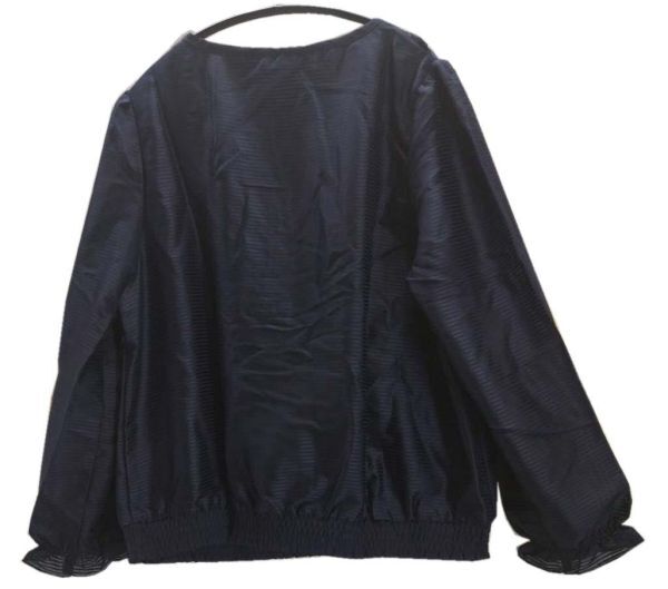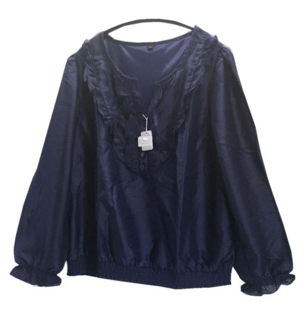 フリル使いブラウス 長袖 袖口ゴム 裾ゴム ボーダー柄 |