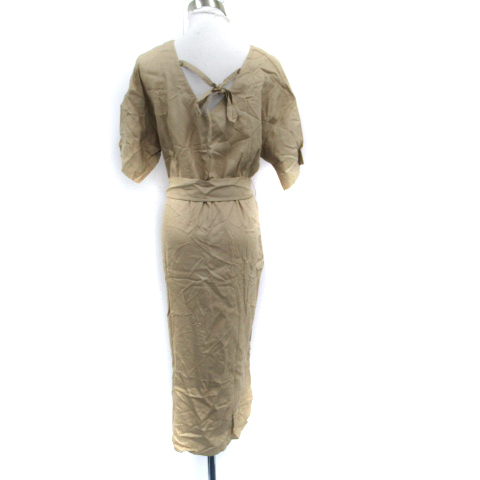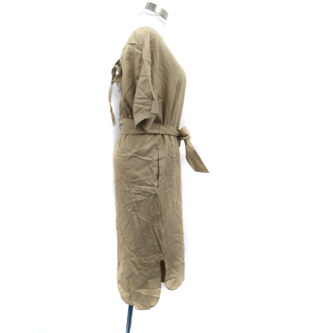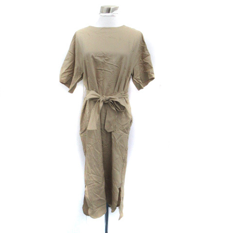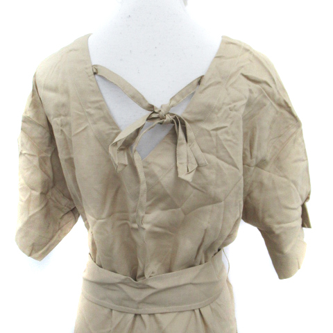 ナノ&コー nano&co ナノユニバース ワンピース ロング丈 半袖 リボン 36 S ベージュ /SM21 レディース
