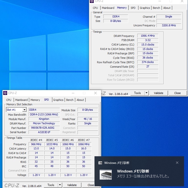 キングストンのDDR4メモリ、8GB1枚です。