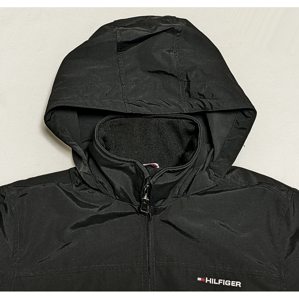 TOMMY HILFIGER 襟ロゴ レガッタジャケット M 美品 フード付 トラック スタンドカラーブルゾン トミーヒルフィガー