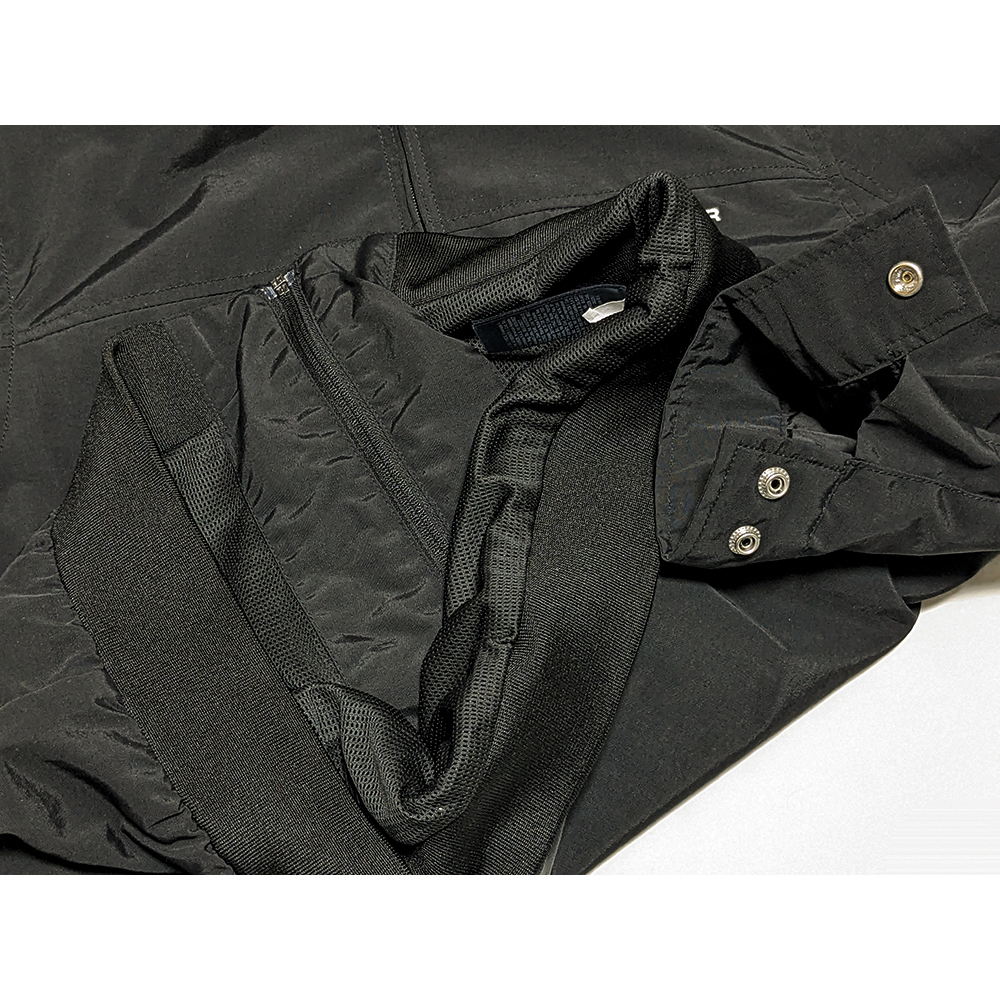 本体のみメッシュ裏地付き、襟裏ジャージ調素材、襟にフード収納