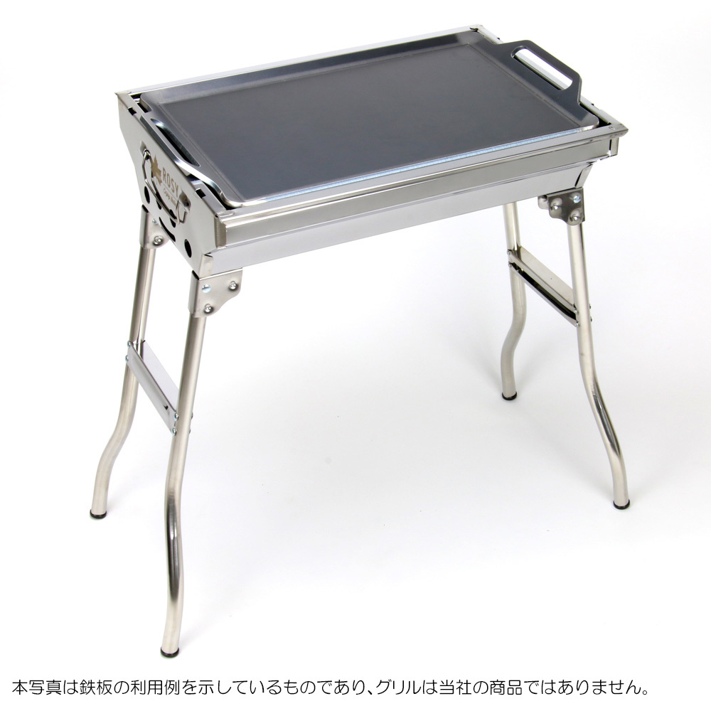 ロゴス ROSY ベーシックグリル付属の網を取り外し、本商品をのせ替えるだけでご使用頂けます。グリルに合わせた鉄板サイズなので使い勝手抜群です。空気が流れ、炭や薪などの燃焼効率が下がりにくいサイズ設計。