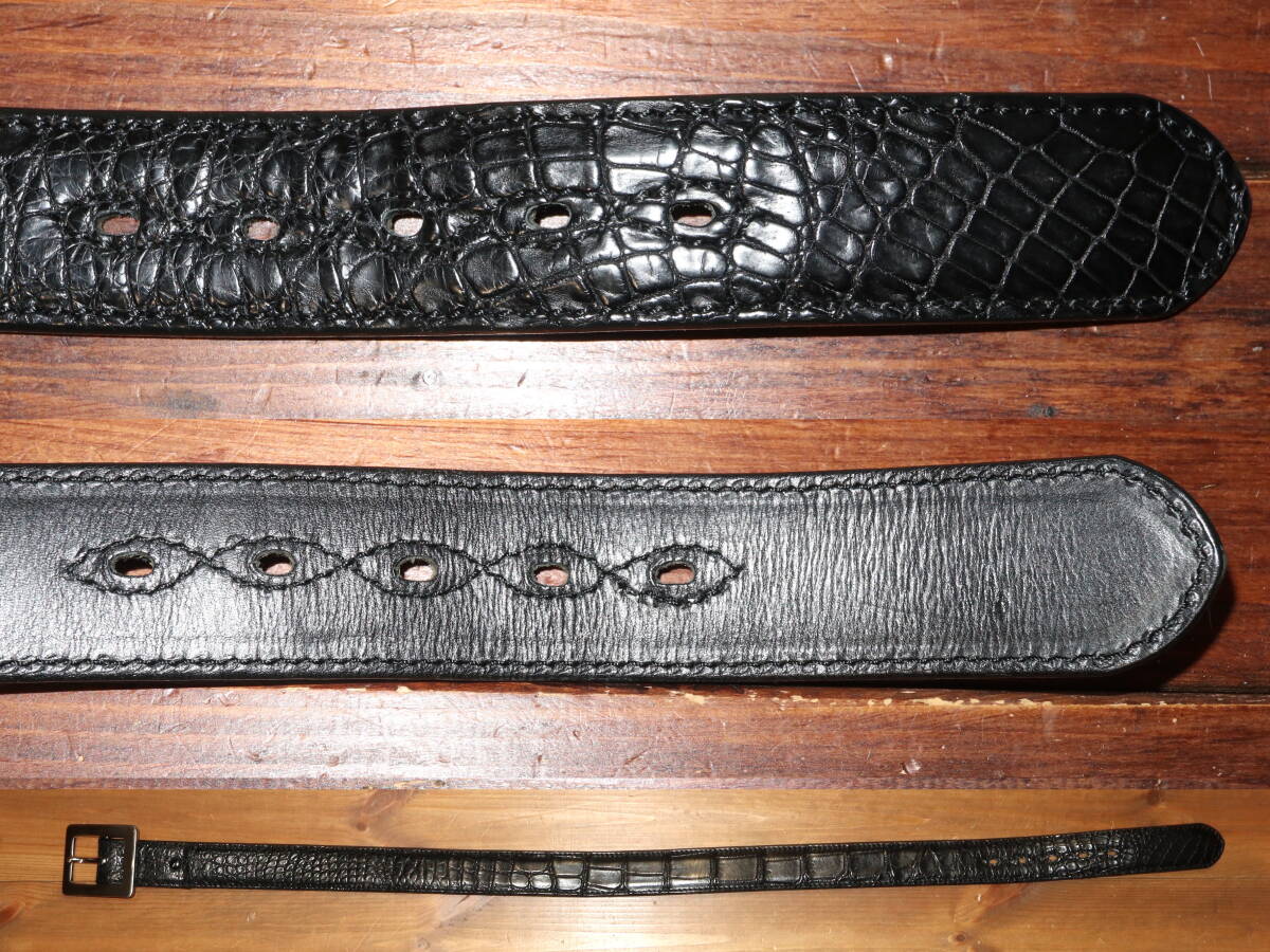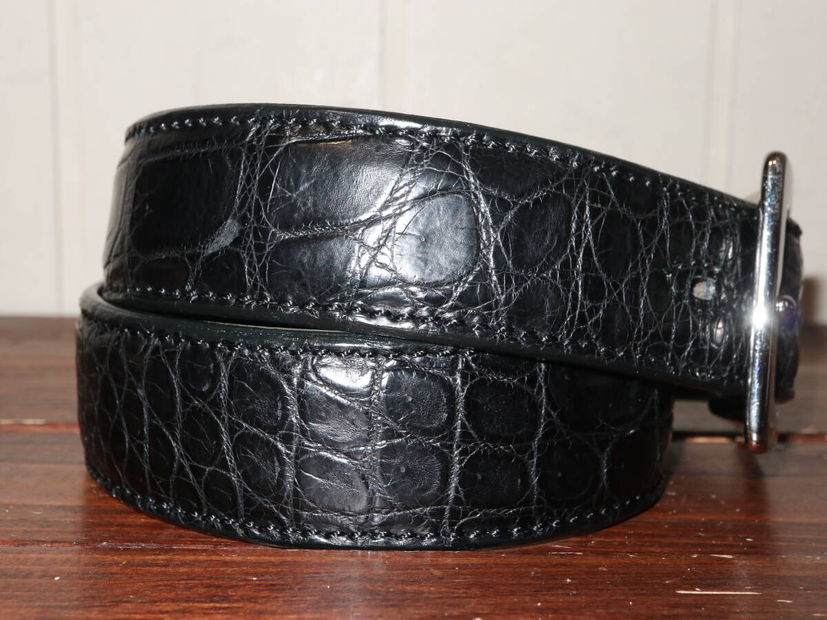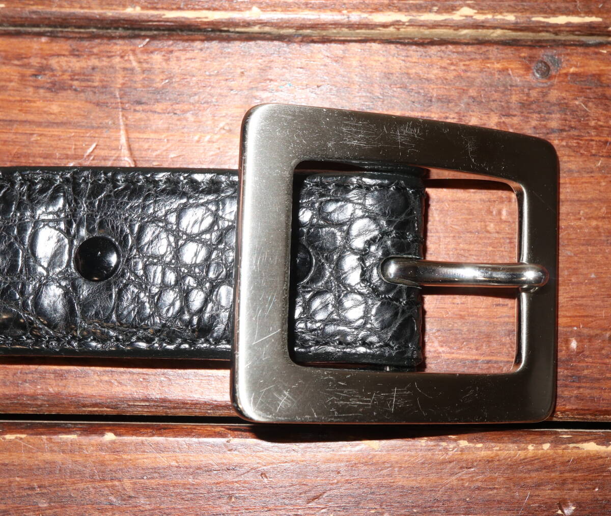 厚みもあり、クロコダイルを使用したベルトでは他ではみられないヘビーな作りです。