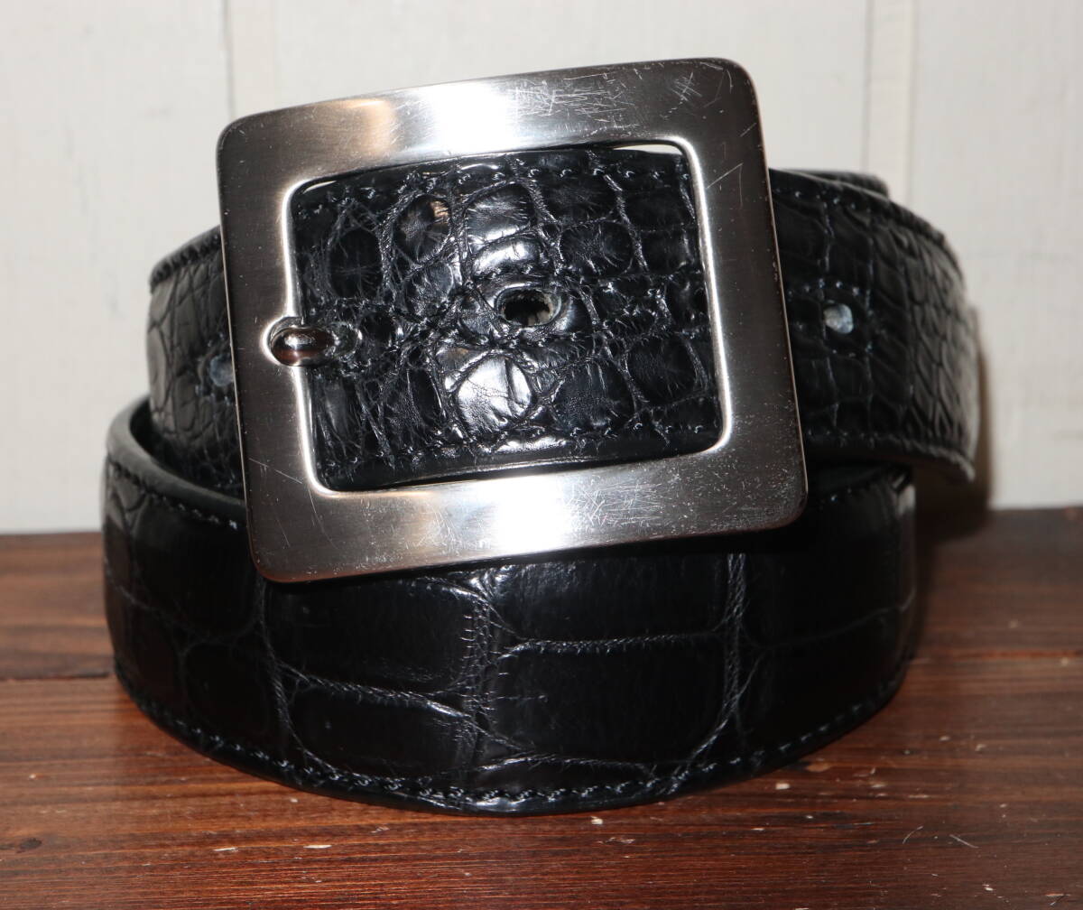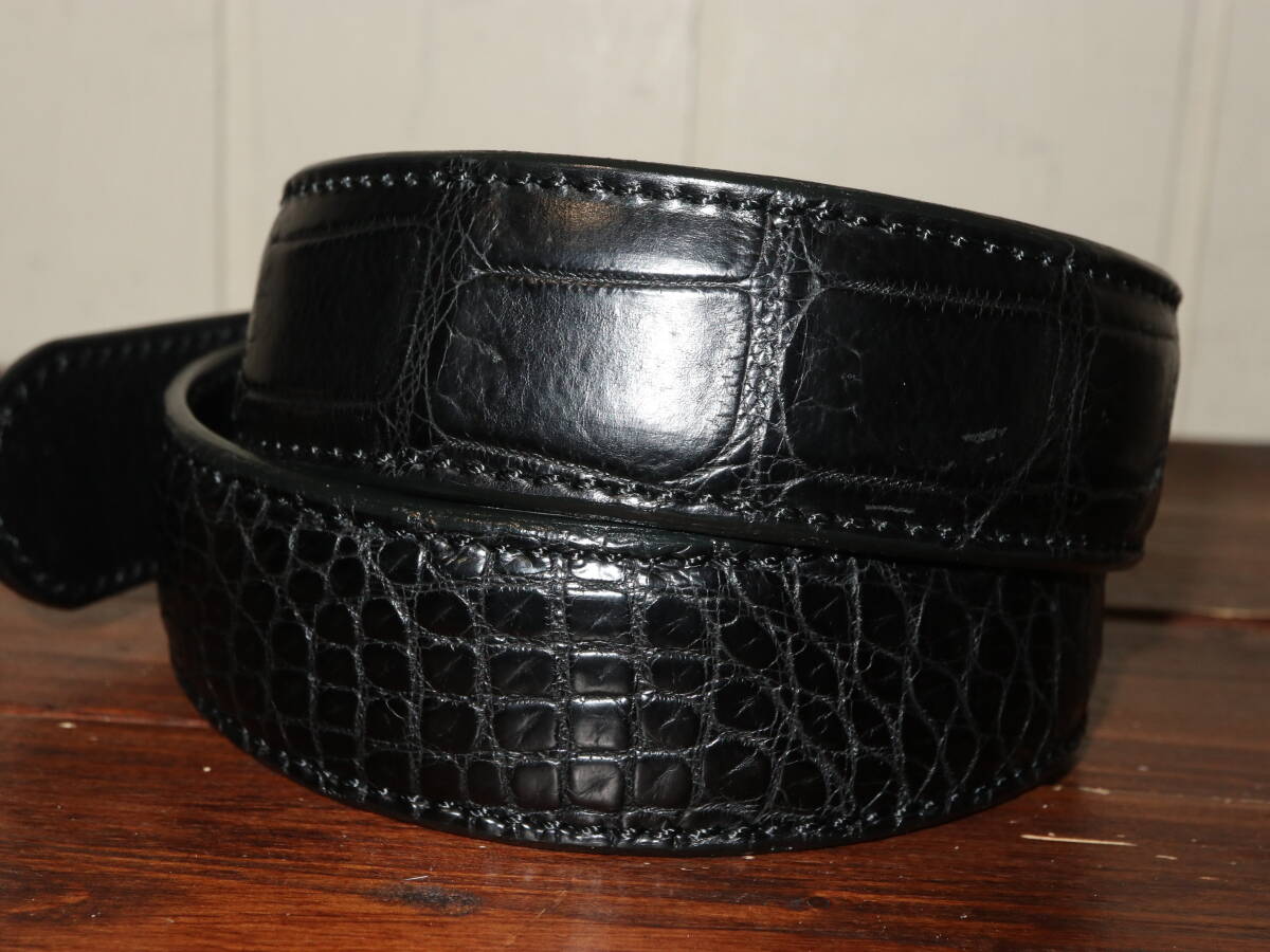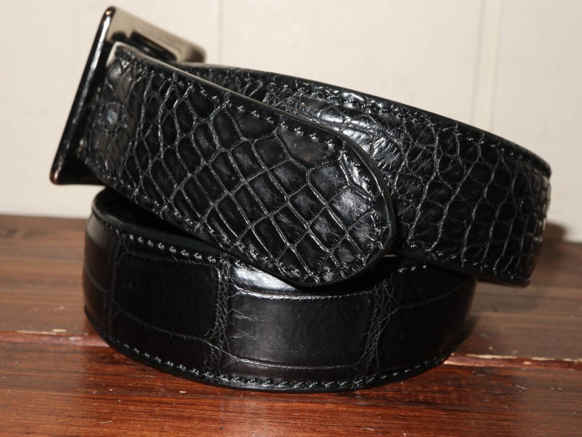 厚みもあり、クロコダイルを使用したベルトでは他ではみられないヘビーな作りです。