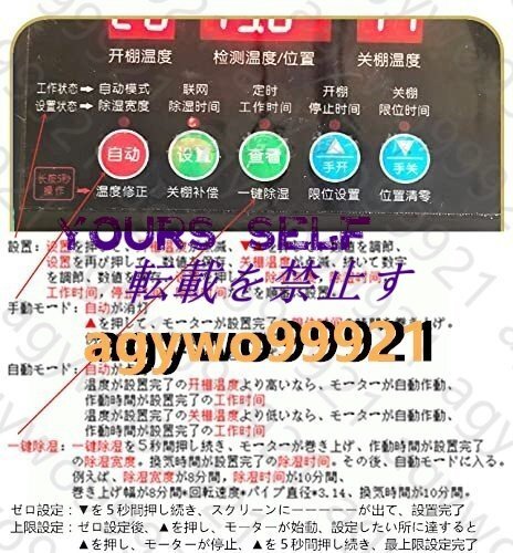 自動式フィルム巻上げ換気装置 温度制御 5点セット 巻上モーター+リフター+制御器 農業温室/ビニールハウス用 開閉幅0-4m 110V 100W 2.8rpm 最大巻上げるパイプの長さ110M