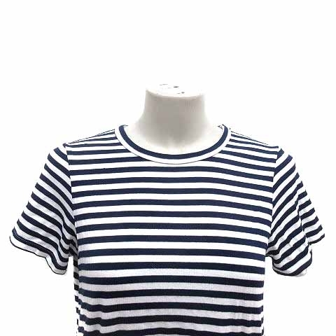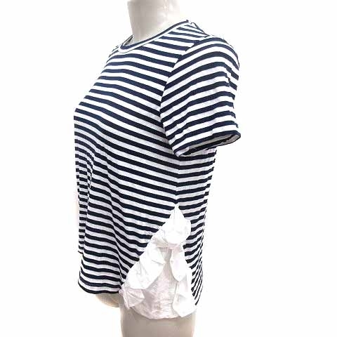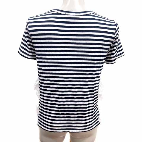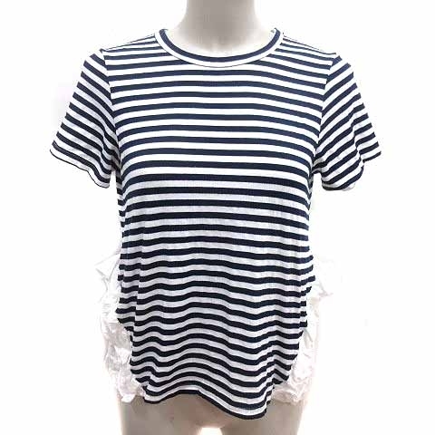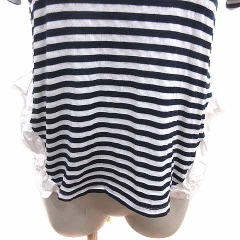 クルートゥ clu too ニット カットソー フリル ボーダー 半袖 S 紺 ネイビー 白 ホワイト /YK レディース