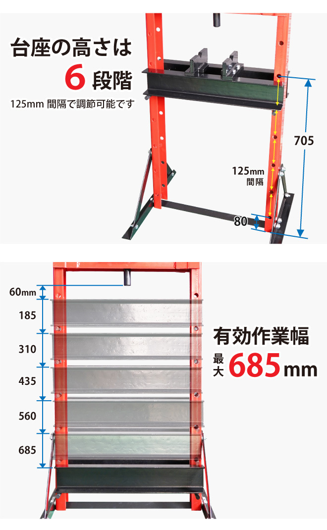 | サイズ | 高さ 1305×幅 665×奥行 550mm 台座高さ調整 6段階調整(125mm刻み) |