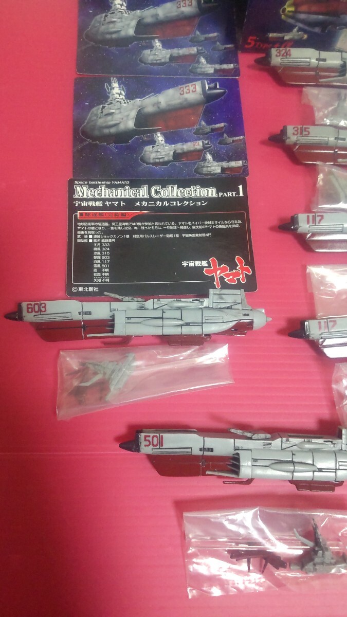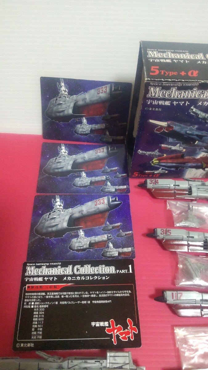 松本零士、宇宙戦艦ヤマトメカニカルコレクションPART.1、5Type+α、6バージョン、駆逐艦全6種類、333/冬月、324/磯風、501/雪風、117/浜風、315/涼風、603/朝霧の6種類と501/雪風、117/浜風、のダブリ=計8艦、箱1個、台座、カード類は8艦分揃ってます。