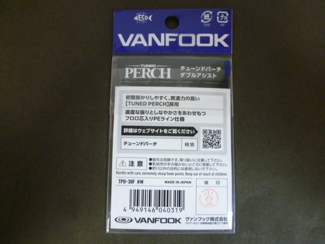 | ○AP-3743 VANFOOK ヴァンフック TUNED PERCH チューンドパーチ ダブルアシスト フッ素ブラック TPD-30F #M 海サクラ ※新品 | |