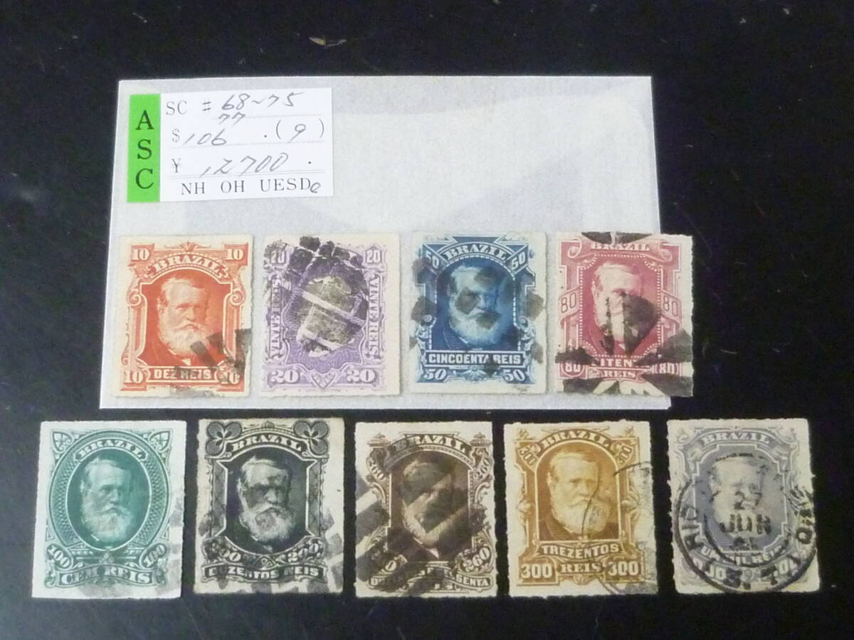 24 M №5 ブラジル切手 クラシック 1878-1879年 SC#68-77の内 計9種 使用済 【SC評価 $106】