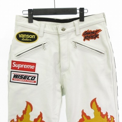 シュプリーム SUPREME × VANSON 19SS Leathers Ghost Rider Pants レザー ゴーストライダー パンツ ワッペン 白系 ホワイト 32 メンズ