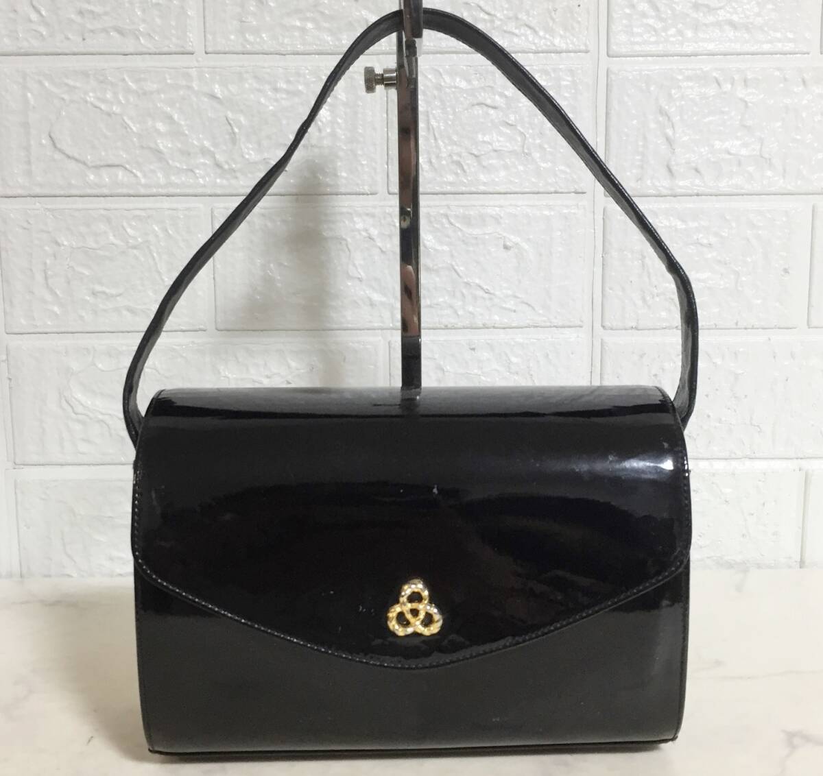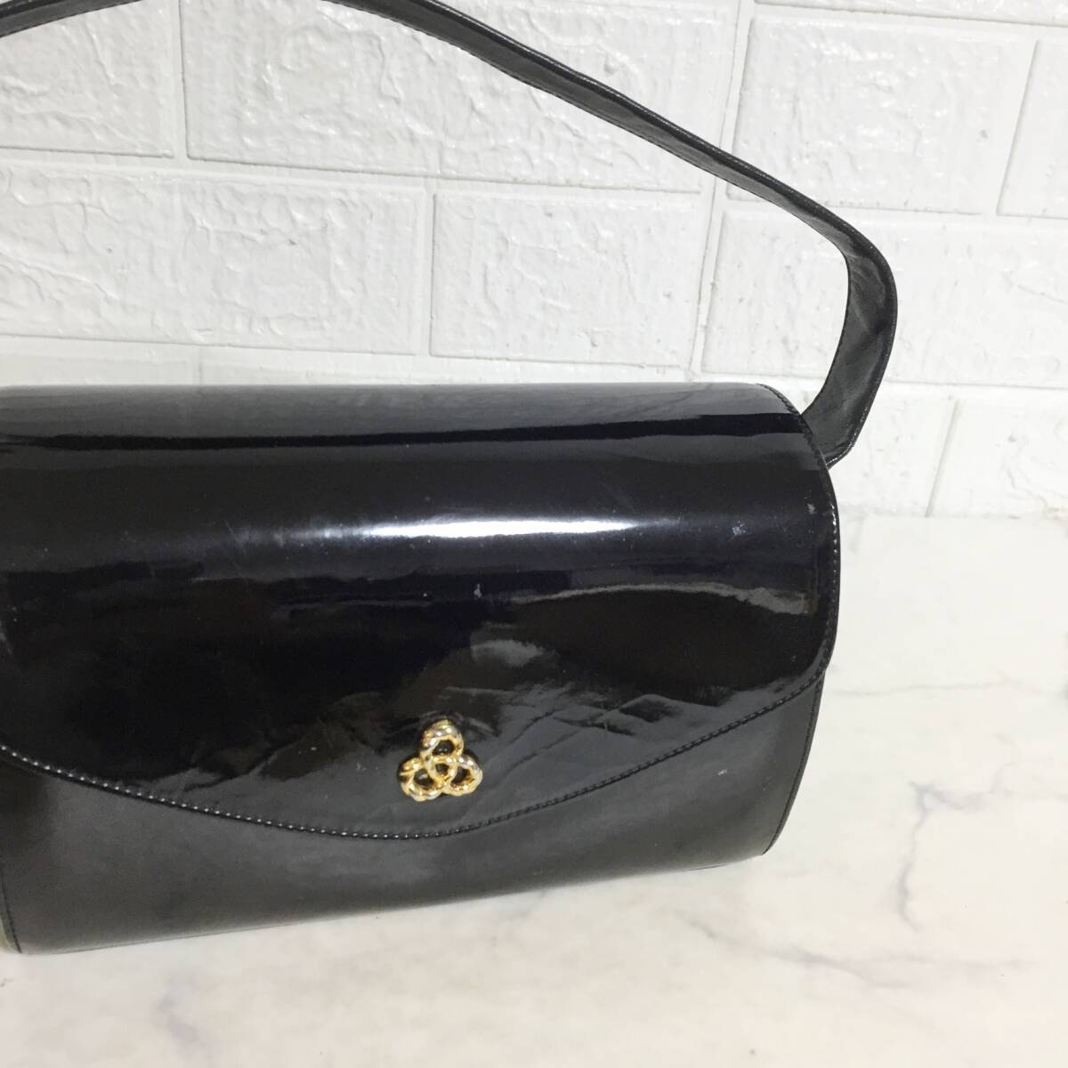no32855 銀座かねまつ エナメル レザー フォーマル 肩掛けショルダー ハンド バッグ