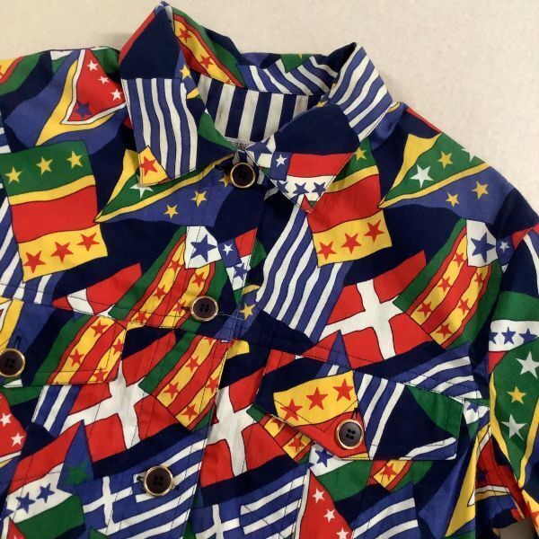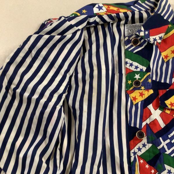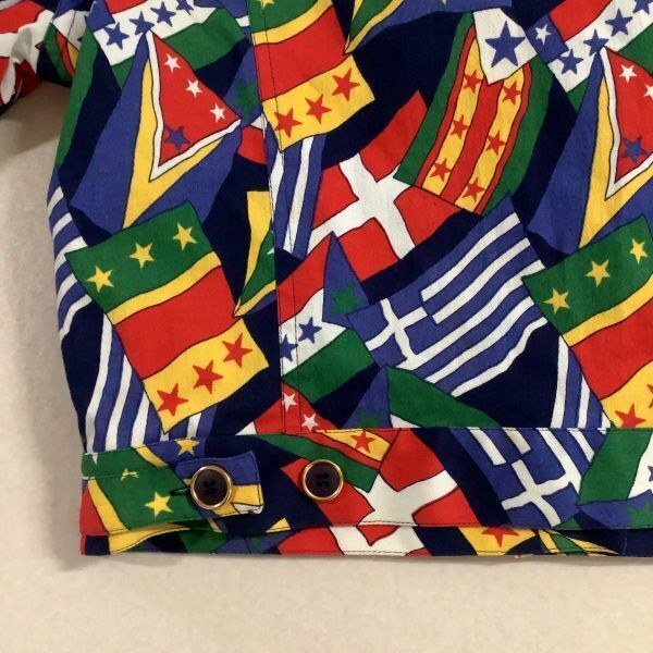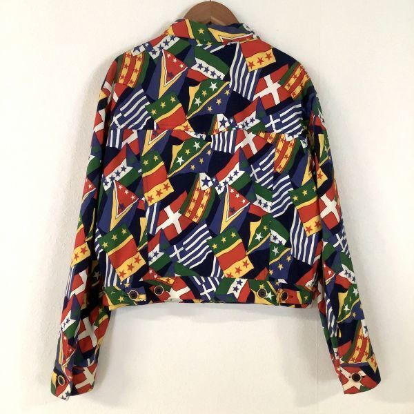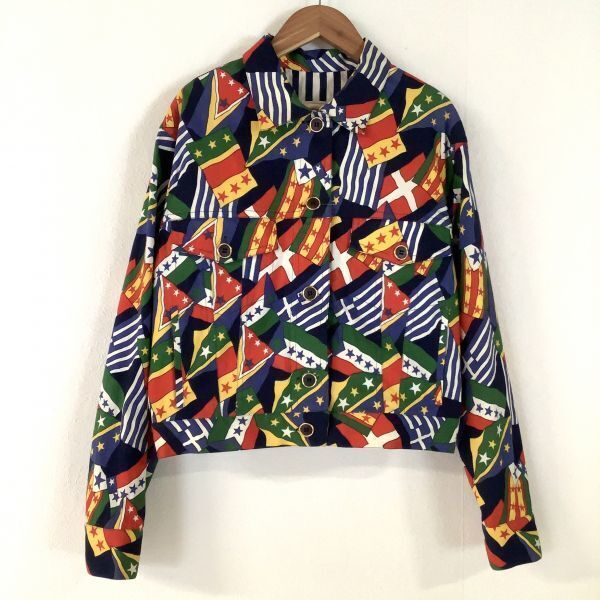 希少 奇抜 イタリア製 PANCALDI&B 総柄 フラッグ柄 デニムジャケット レディース サイズ1 S