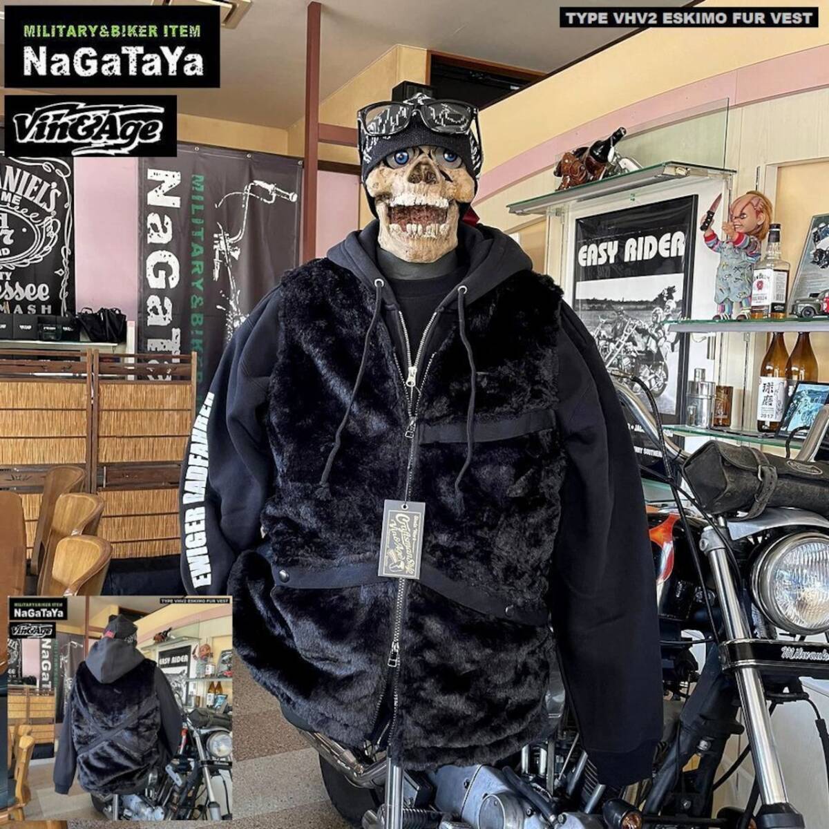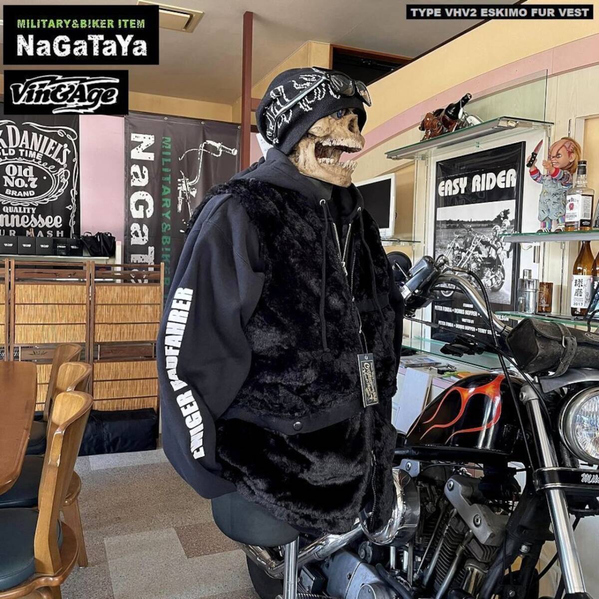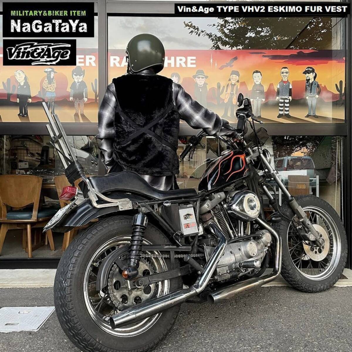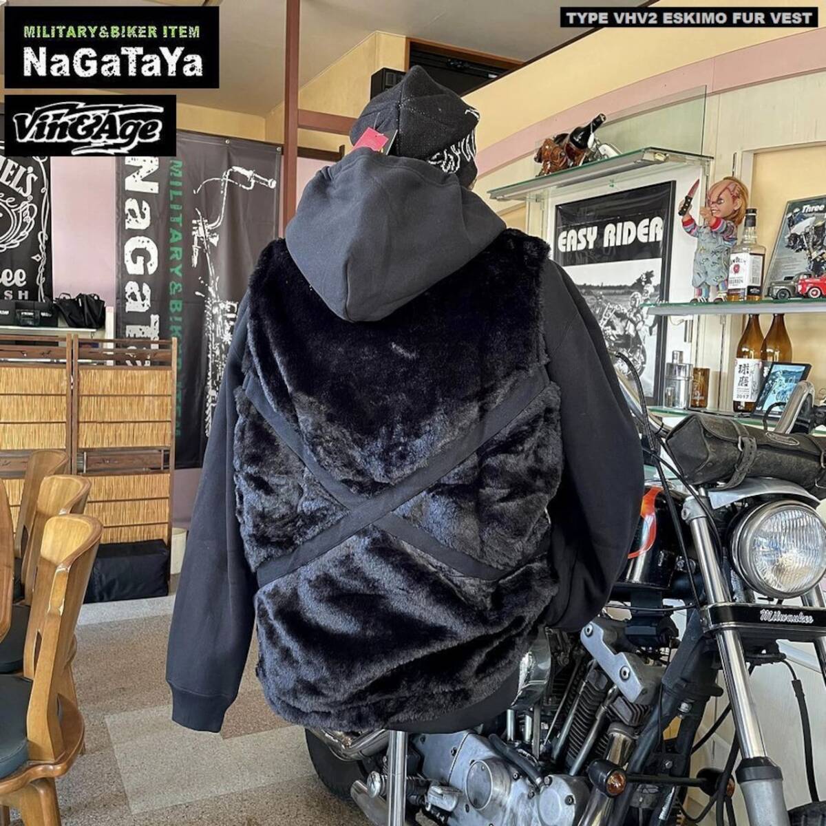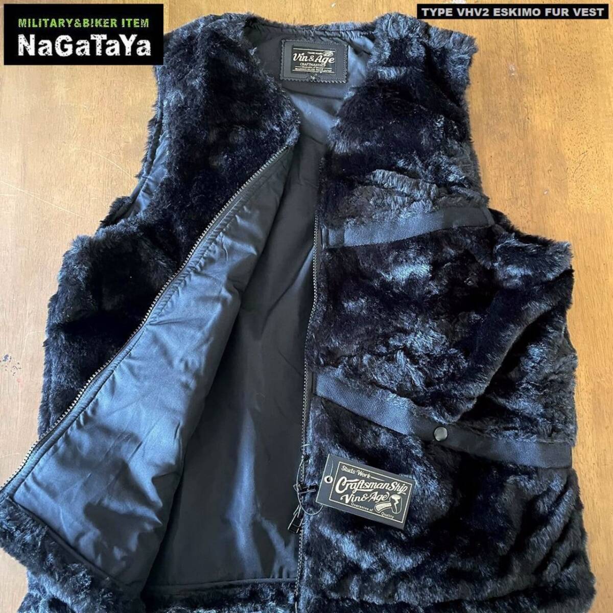 Vin&Age ビンアンドエッジ TYPE VHV2 ESKIMO FUR VEST エスキモー ファー アウターベスト BIKER仕様 ブラック 黒 Lサイズ バイカーベスト