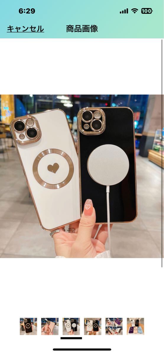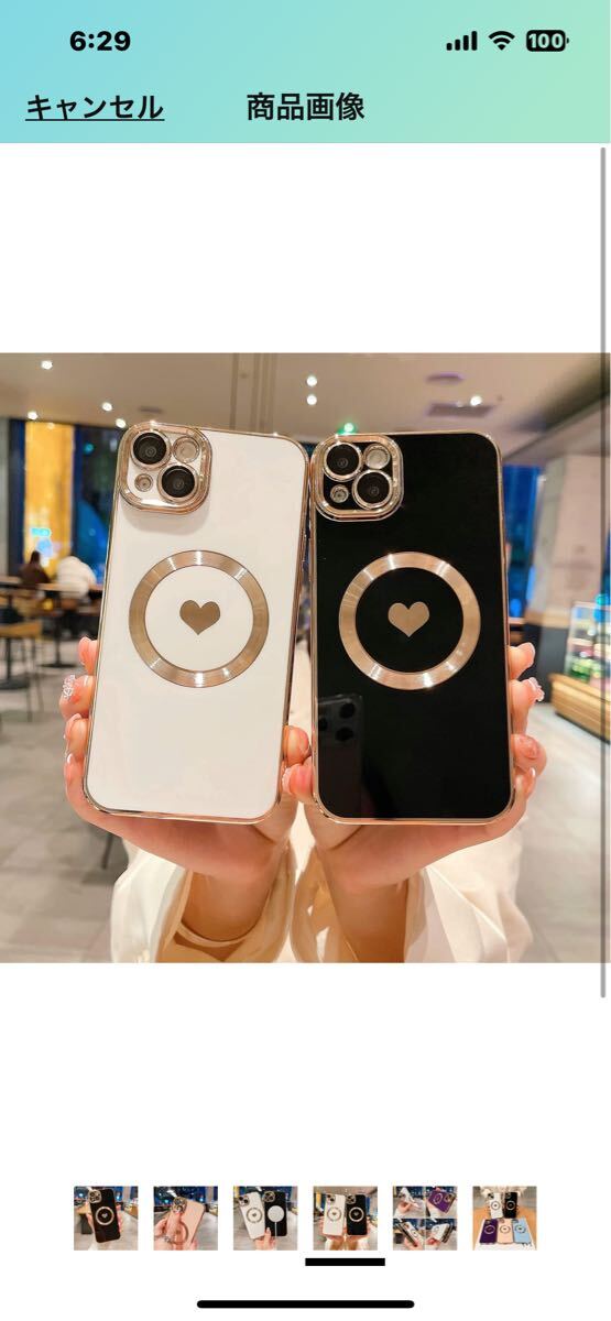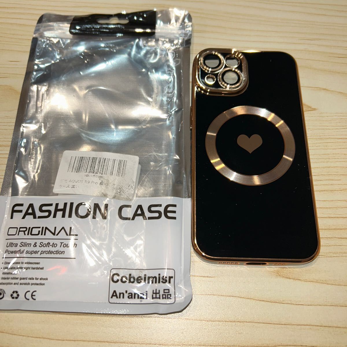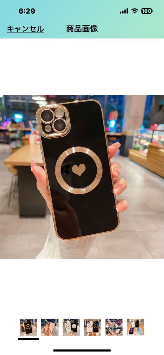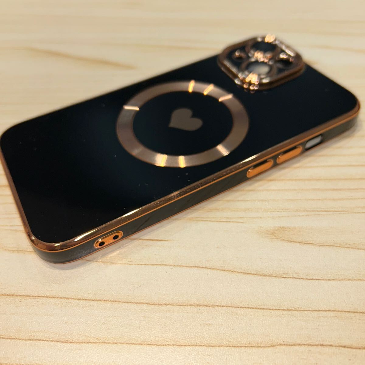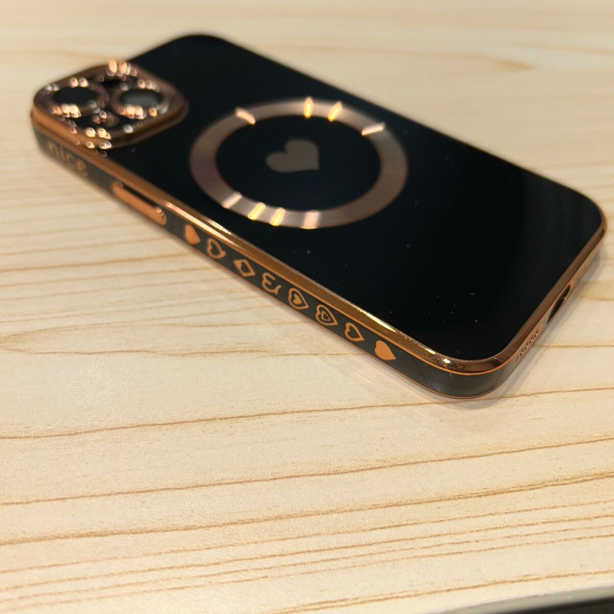 h285 iPhone 14 ケース 可愛い ハート おしゃれ マグネット搭載 ワイヤレス充電対応 耐衝撃 全面保護 ストラップホール付き(ブラック)