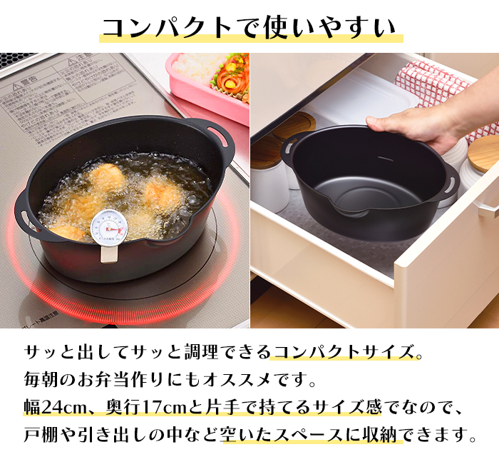 少ない油でOK!おうちの揚げ物がらくちんになるオーバル揚げ鍋。