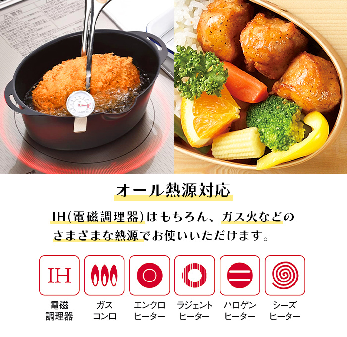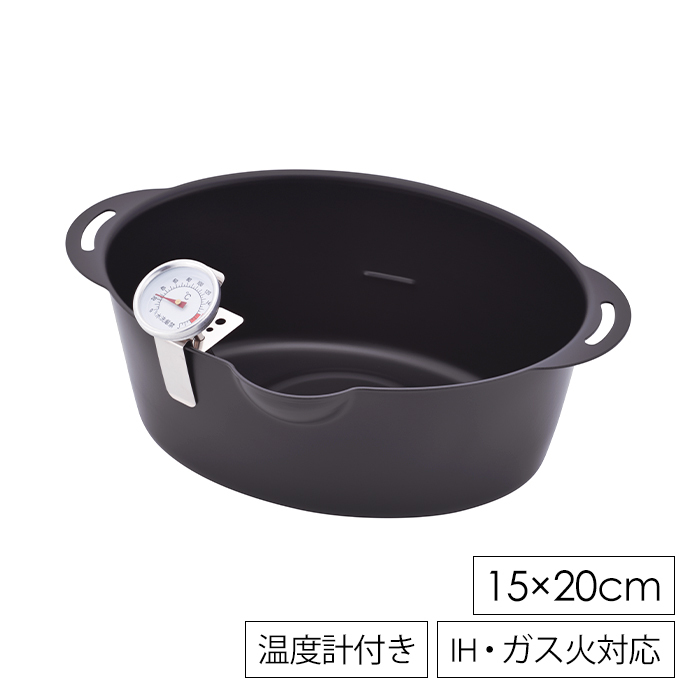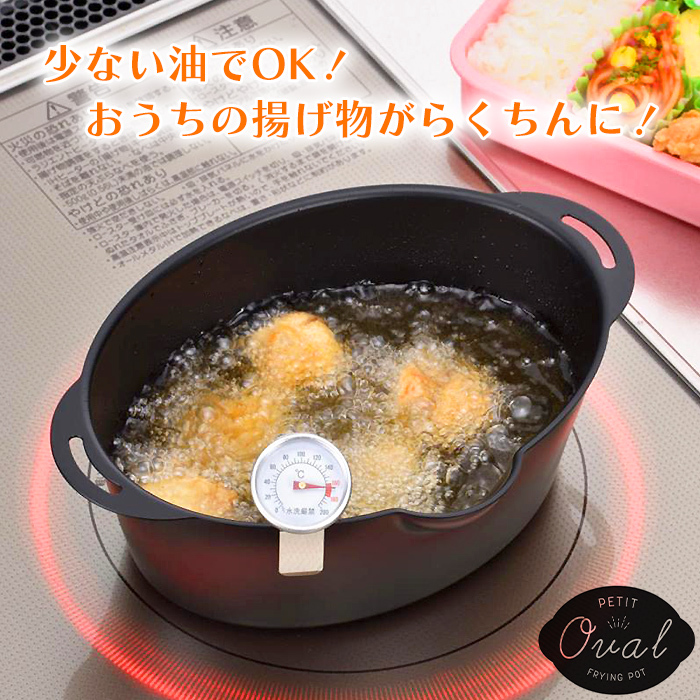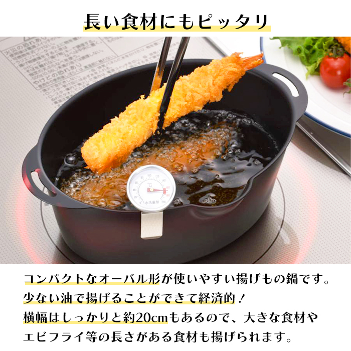 揚げ鍋 プチオーバル 天ぷら鍋 ガス火 IH対応 温度計付き 少ない油 MHRSK-0052