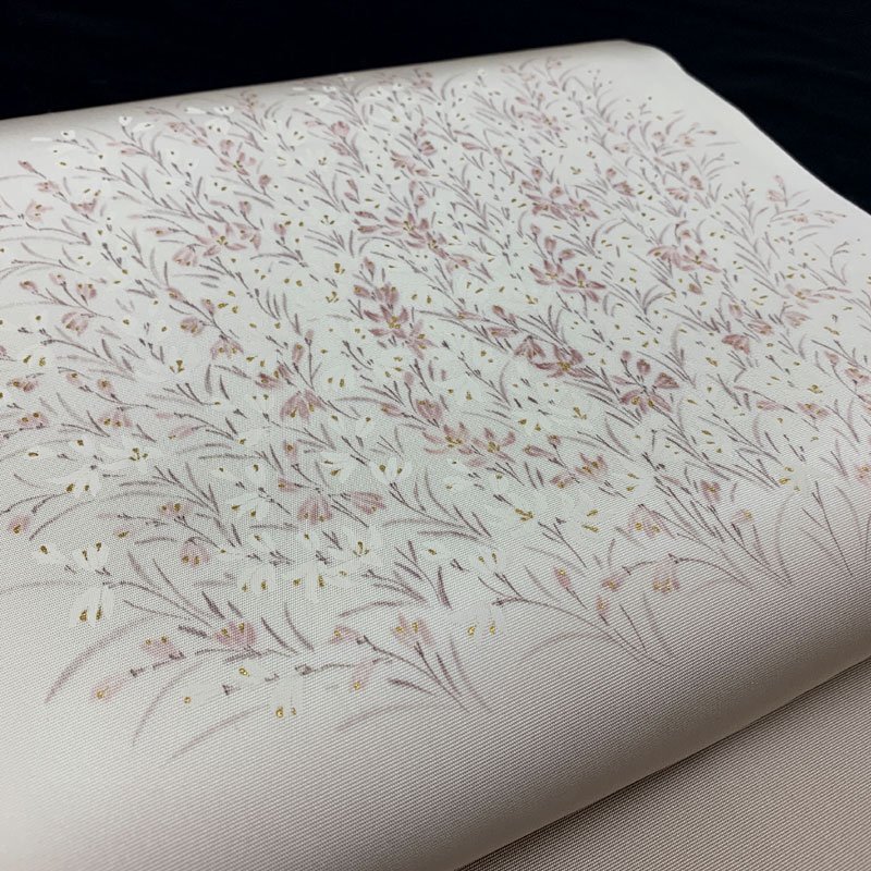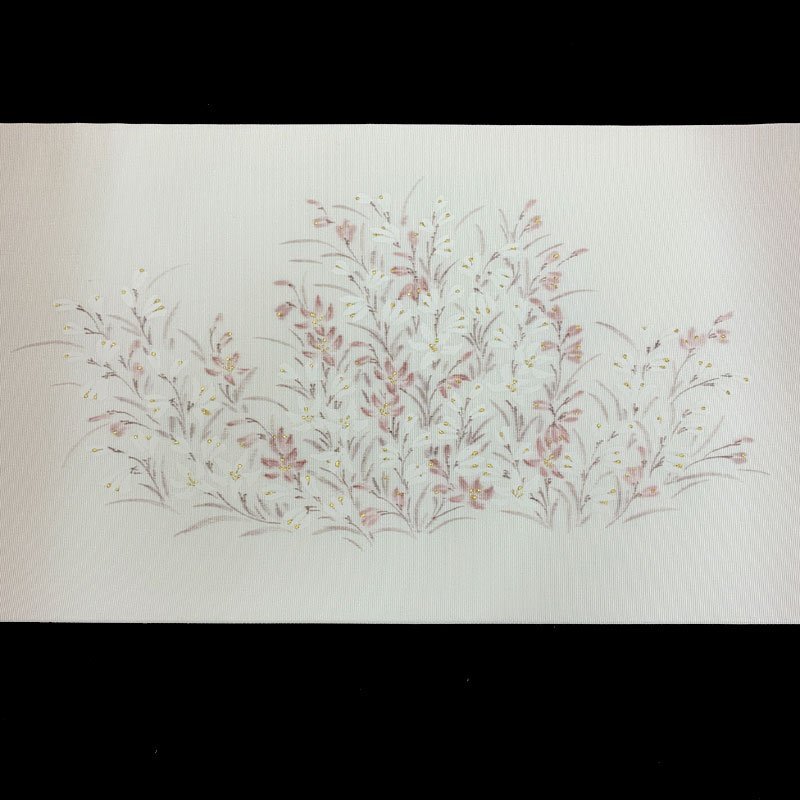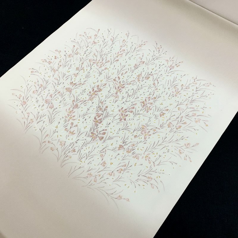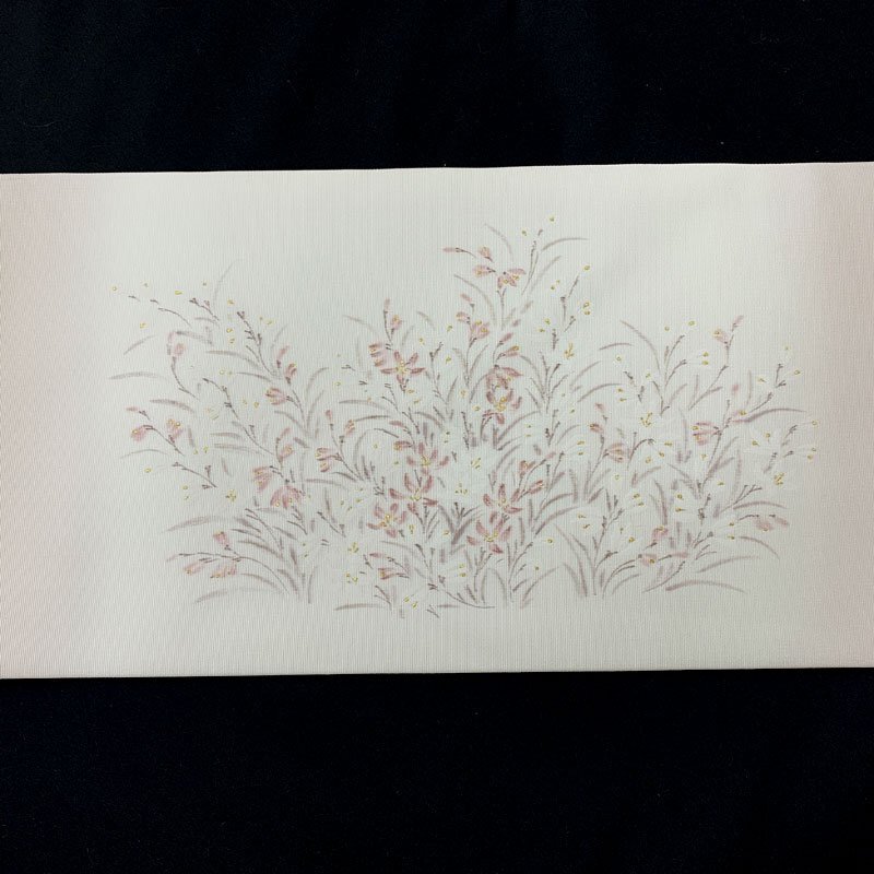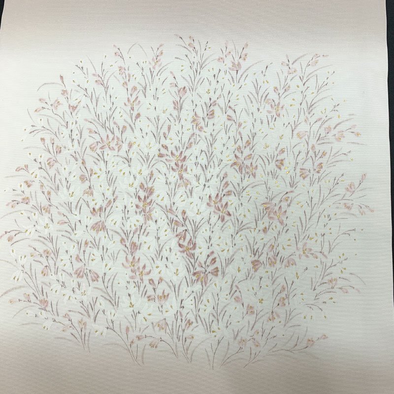 ◇塩瀬 儚げ 小花文様 くすみ系カラー 名古屋帯◇美品 (No.ejio) 銀座きしや取扱、ふんわりと儚げな小花が染め出された塩瀬の名古屋帯です。一部に金彩が施されています。 締め跡もほとんど見えす、目立つようなダメージ等はございません。 【素材】正絹 【色】くすんだ薄い桜色 *モニターによって色味は実際と異なる場合がございます。 【サイズ】幅:31cm、長さ:364cm *素人採寸のため、多少の誤差はご容赦ください。 上質な逸品ですので、いかがでしょうか?よいお品物でお勧めです^^ |