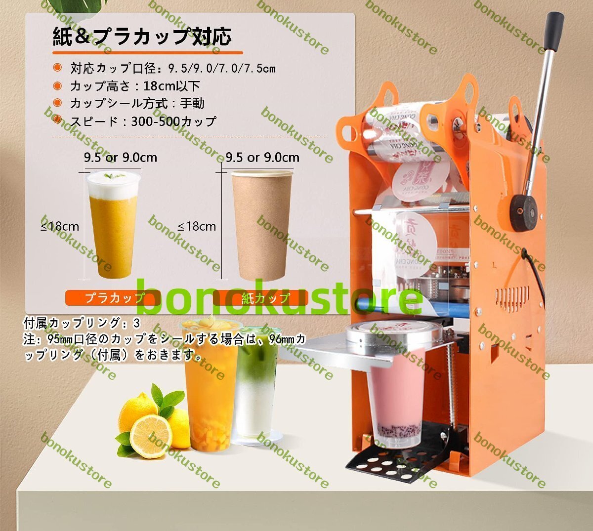 カップシール機カップシーラー 90/95/70/75MM カップの高さ:18CM以内に適用 手動カップシール機 デジタル制御 400-600カップ/時 お茶・コーヒー・ジュース タピオカミルクティー豆乳 など 業務用110Vオレンジ色 |