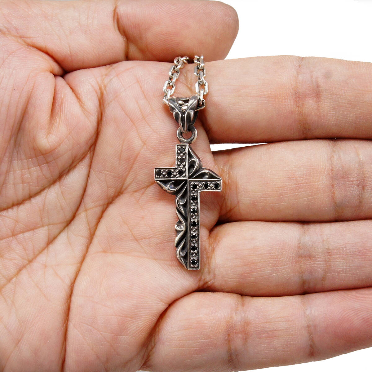クロス アラベスク ジルコニア925シルバー ペンダント 925刻印あり NK-004