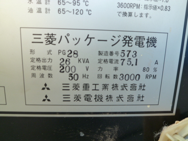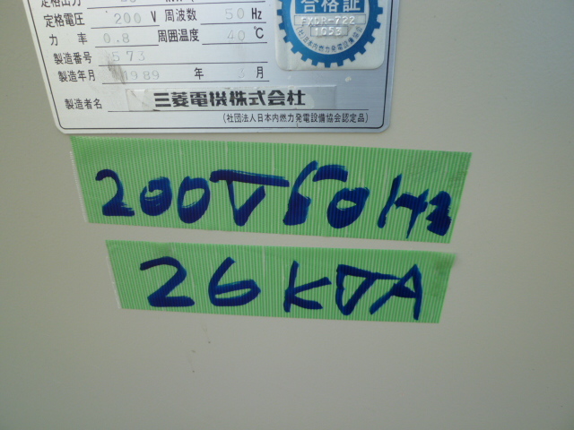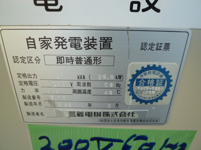 三菱 三菱 ディーゼル エンジン 非常用 発電機  防災 200v 50Hz 26kva 長時間型 ホテル 旅館 スーパー 冷凍機 冷蔵庫