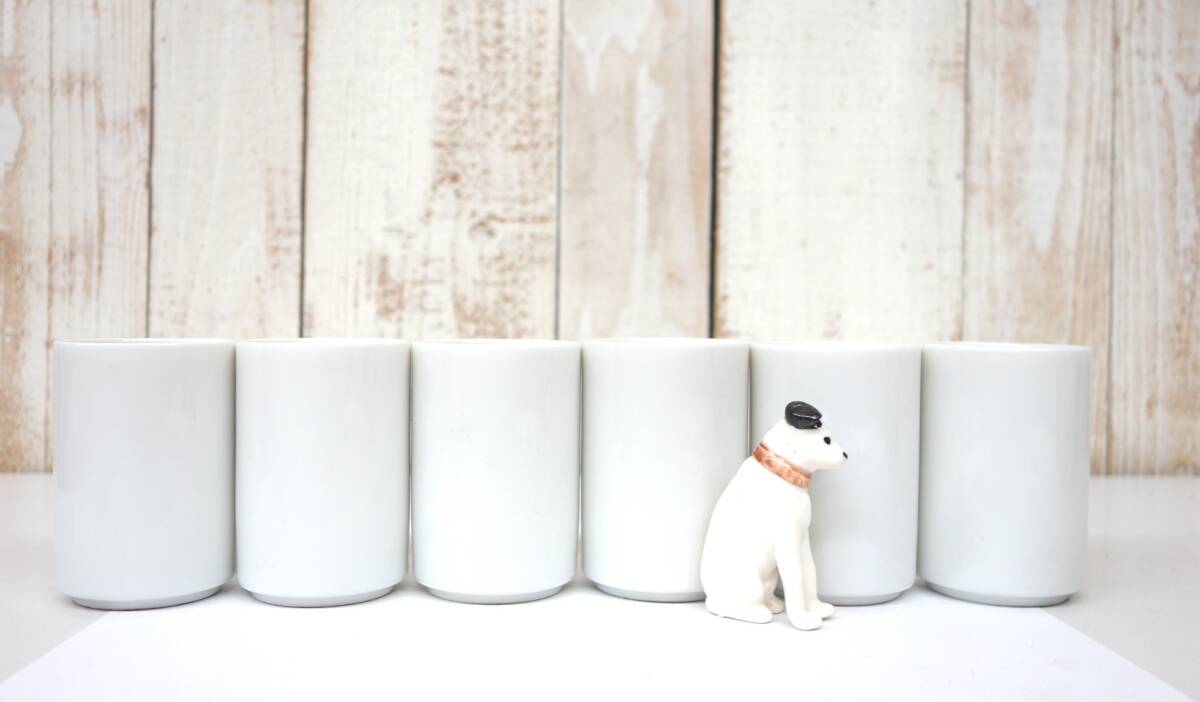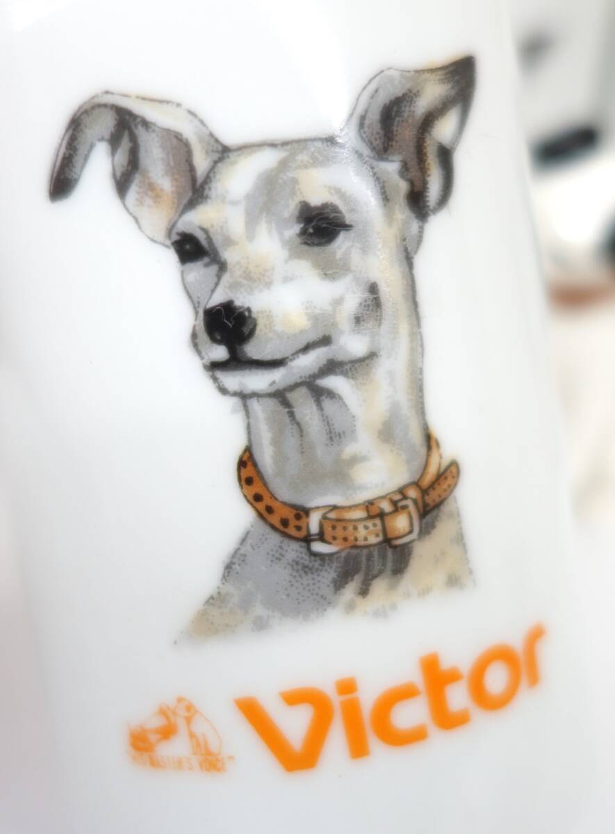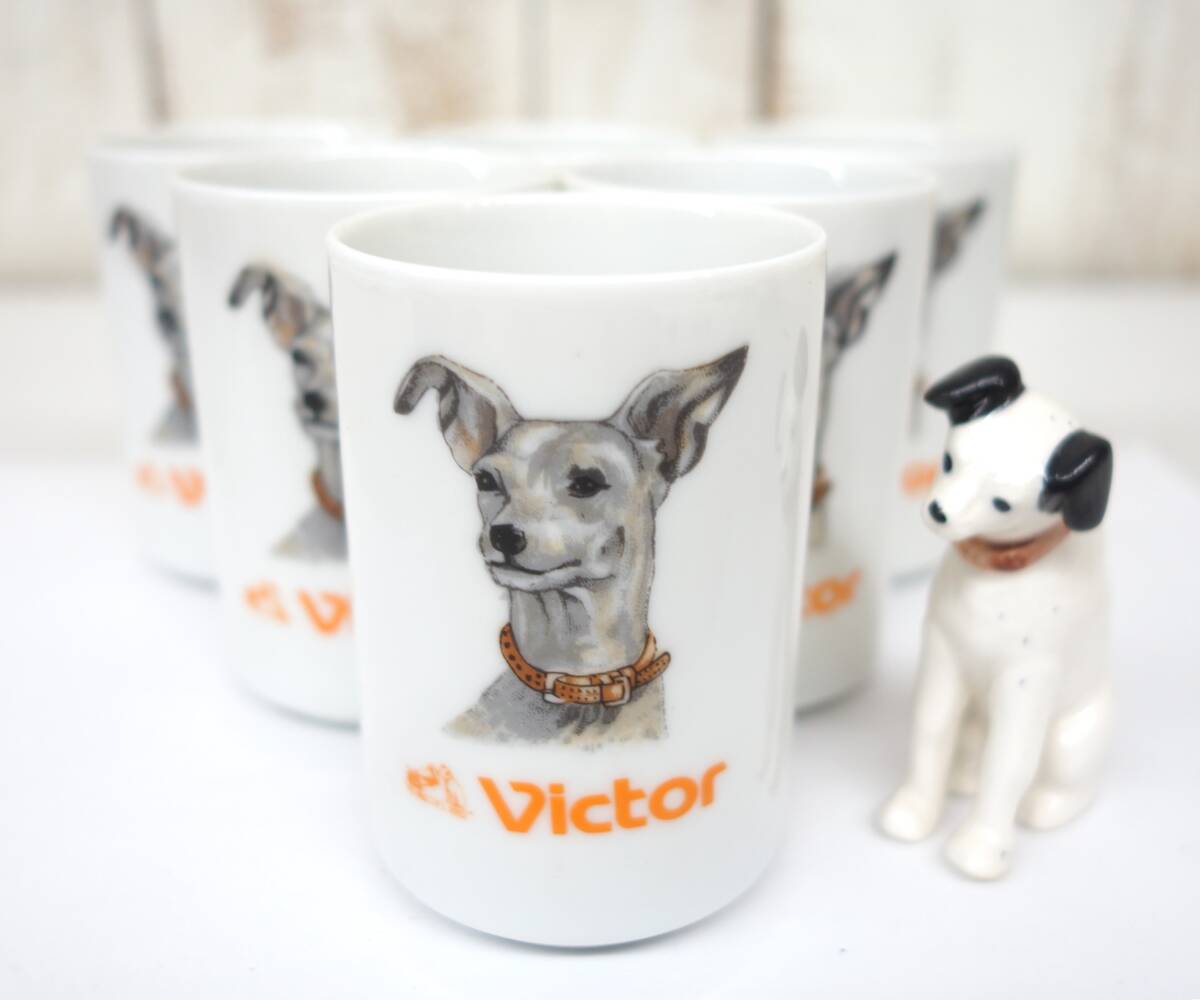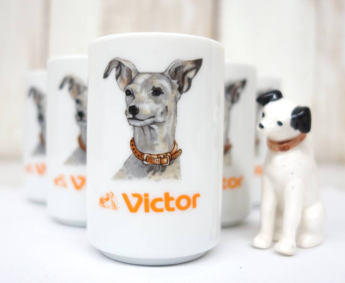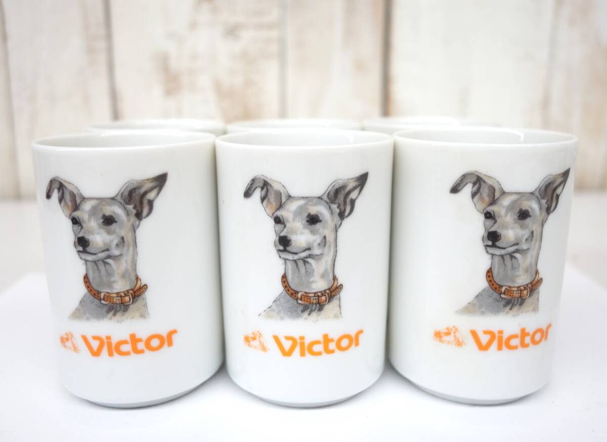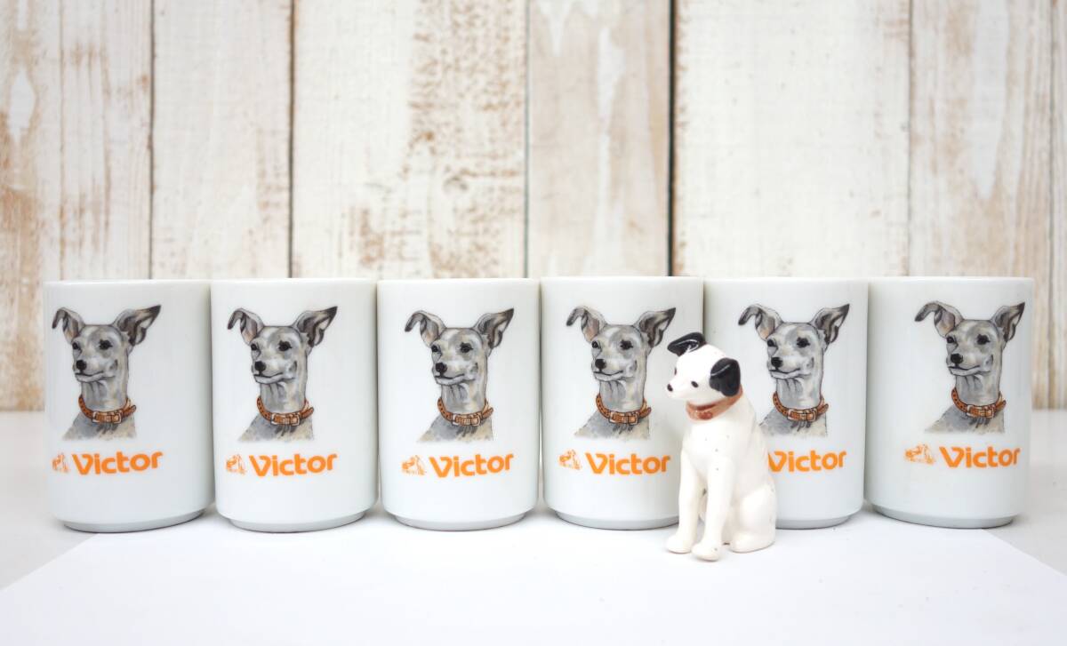 *レトロコレクション 昭和レトロ 当時物 *景品 記念品 ノベルティ *VICTOR ニッパー犬イラスト 湯呑 ゆのみ 六客セット *陶器 陶磁器 日本製 京都工芸 謹製 元箱あり *ニッパー犬 1点おまけです |