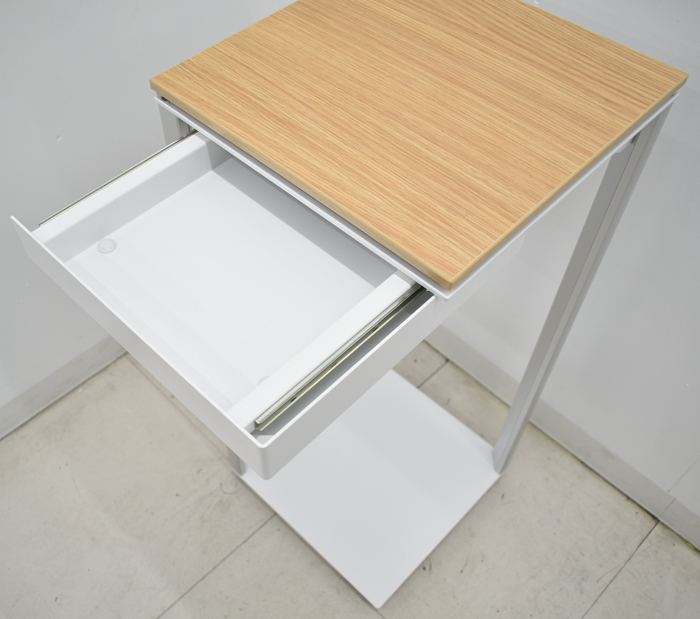 ■備考 コクヨ SAシリーズ 電話台 引き出し付 2021年製 幅350 コクヨのSAシリーズ・電話台です。 コミュニケーション空間を演出する上質なアクセサリーシリーズです。 端正なフォルム、繊細なディテール、上品な素材感で先進性の高いデザインを実現し、部屋隅配置に適した形状で隅に配置すると脚が目立たなくなり、スッキリとした印象になります。天板と支柱の隙間部分に配線することができます。 ●引出内寸法/幅22×奥行31.5×高さ3.5cm ●引出開口内寸法/幅22×奥行17cm ●耐荷重/天板:約10kg、引き出し:約1.5kg ●機能/小物引き出し、引き出しの方向の付け替え、天板と支柱の隙間部に配線可能、アジャスター(調整8mm) ※複数入荷商品中の代表的な1台を撮影したものです。中古品ですので全く同じ状態というわけではありませんが、概ね掲載画像程度のものをお届けするものとご理解ください。 建物内への搬入作業や梱包残材の回収をご希望される場合は、アートセッティングデリバリー(家財おまかせ便)でのお届けで対応可能です。 アートセッティングデリバリー(家財おまかせ便)でのお届けの場合の送料はお見積りとなります。 ご注文前にお見積りすることも可能ですし、ご注文時やご注文後にその旨ご希望いただければ対応させていただきますのでお申し付けください。 4t車が進入できない場所への配送・日曜祝日着・配達時間帯指定・トラックからの荷下ろし作業・搬入作業・組立作業等をご希望である場合はお見積りにて対応となりますのでお申し付けください(お見積りできない場合がございます)。 クリーニングとメンテナンスをしっかり行ってお届けします。 この商品の程度は中古品として美品といえます。 多少の擦れや傷はあるものの気になる程ではないでしょう。 御使用端末の環境により多少画像の表示色と実物の色に差違が生じる場合がございますのでご了承ください。 |