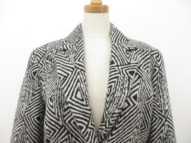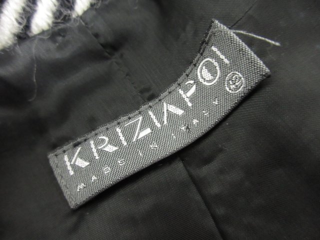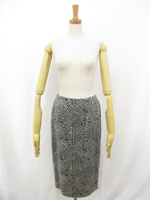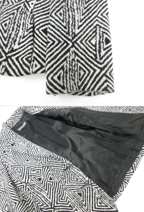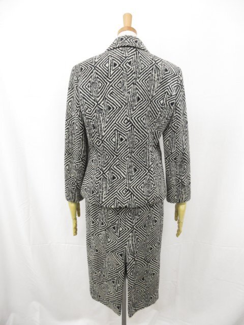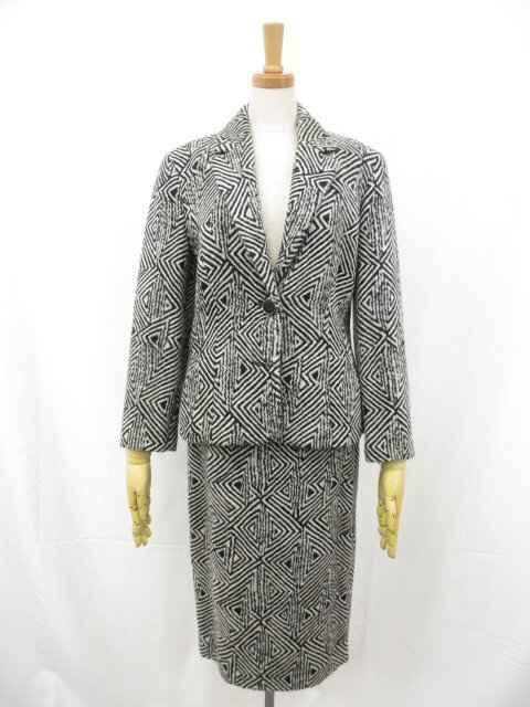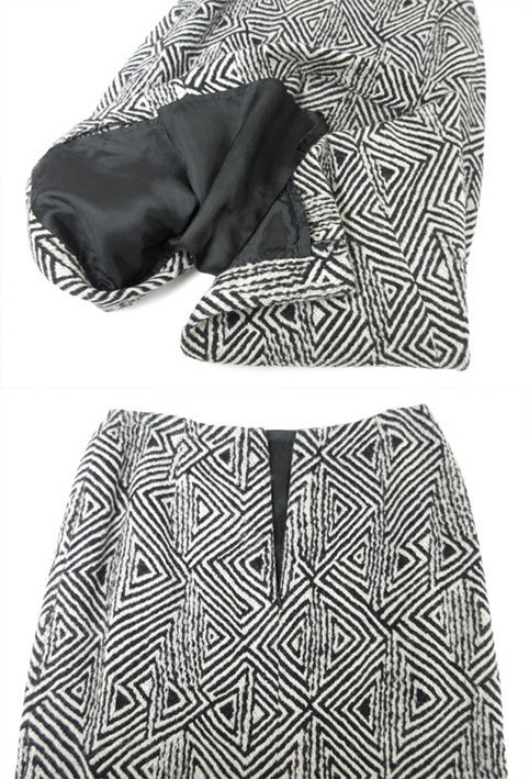 美品【KRIZIAPOI クリツィアポイ】幾何学柄 ウールジャケット×スカート セットアップ スーツ(レディース)42 黒×白系 伊製◯17LS1097◯