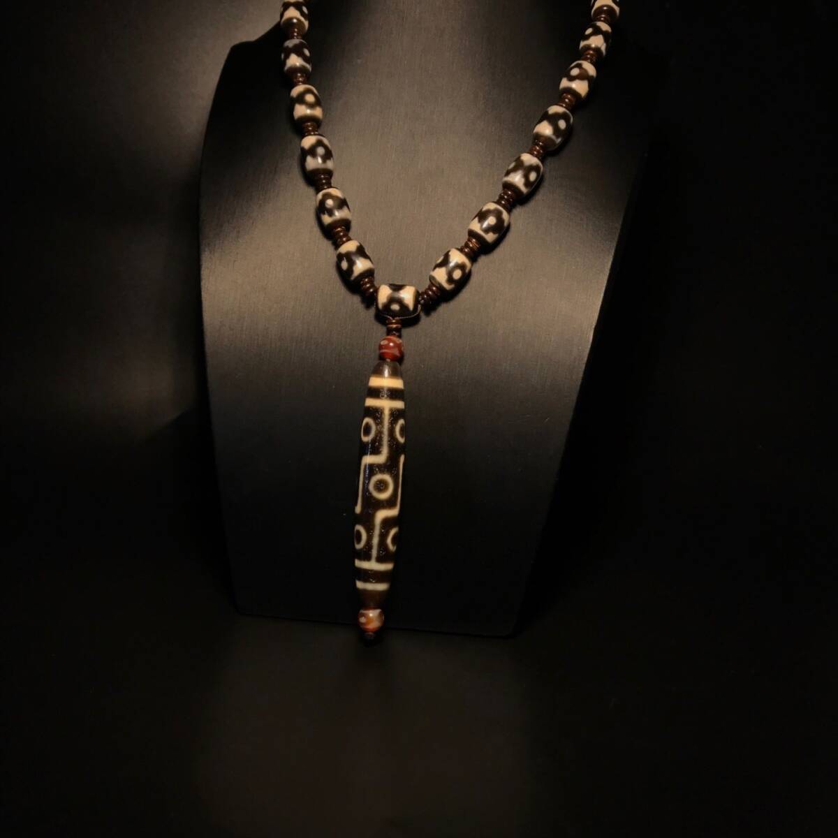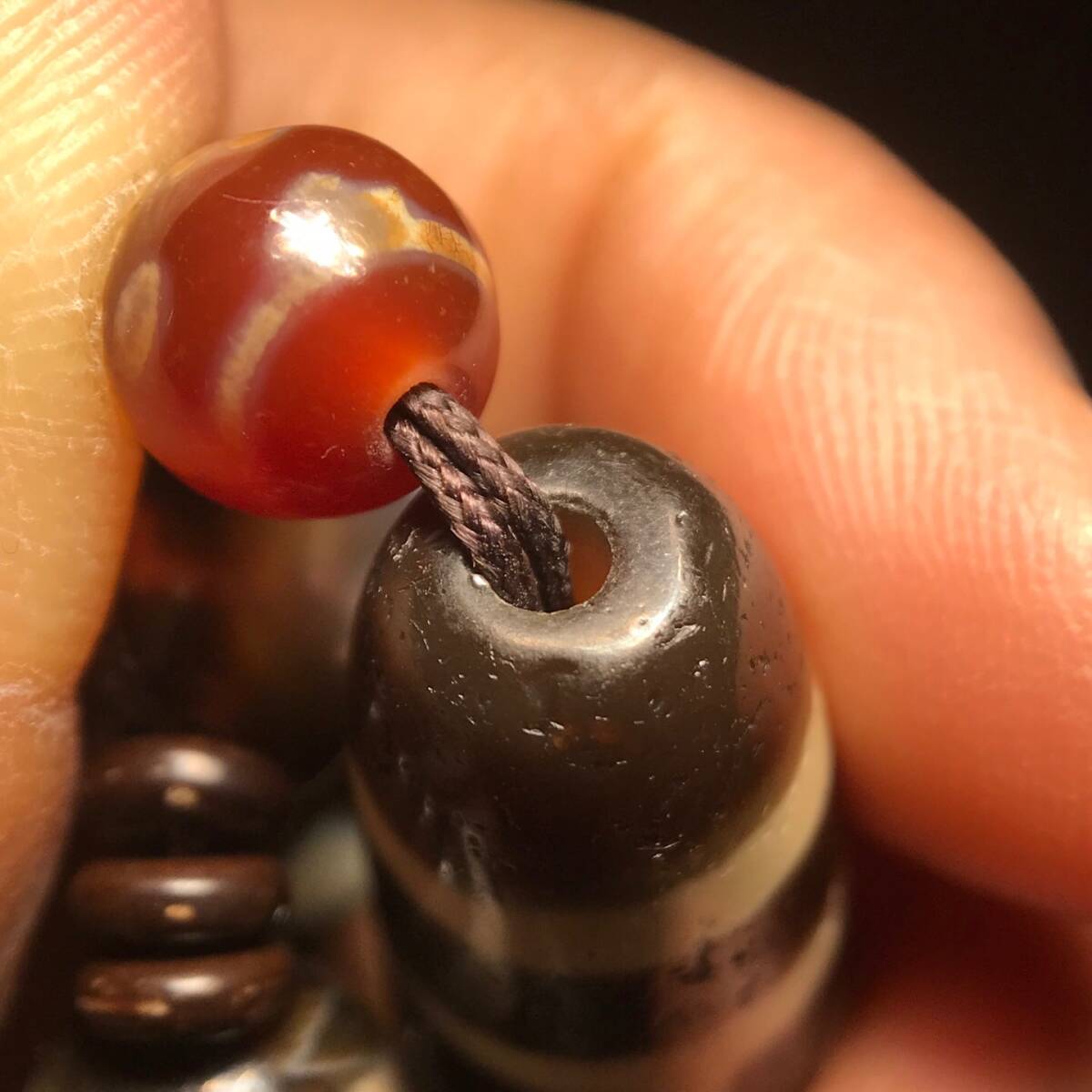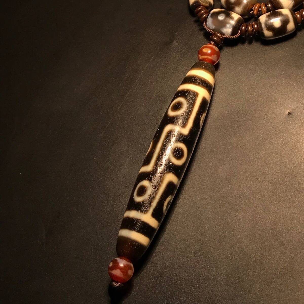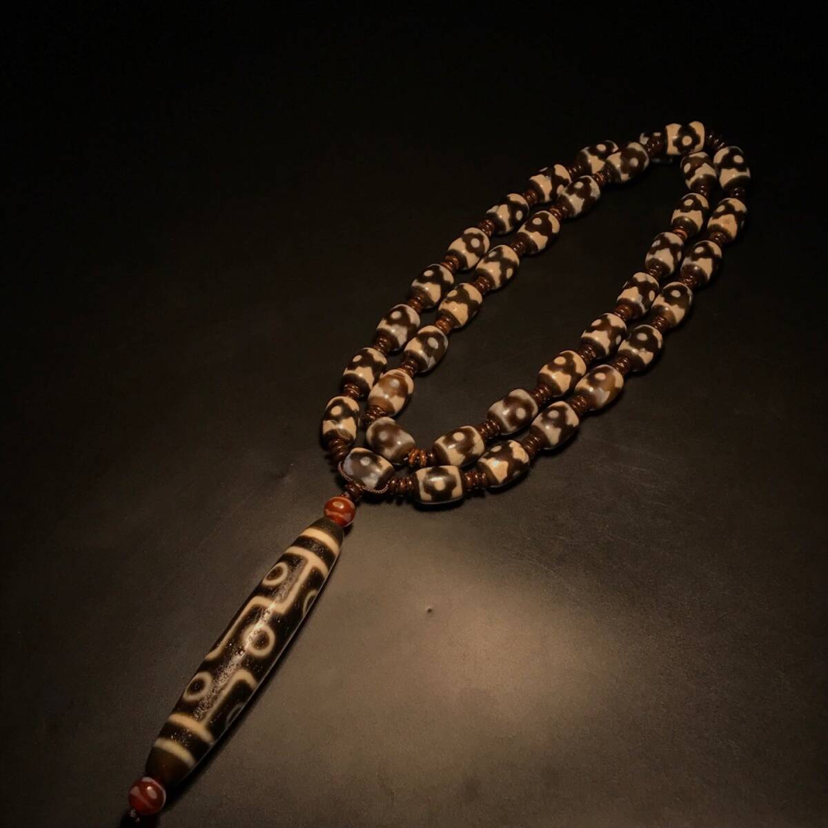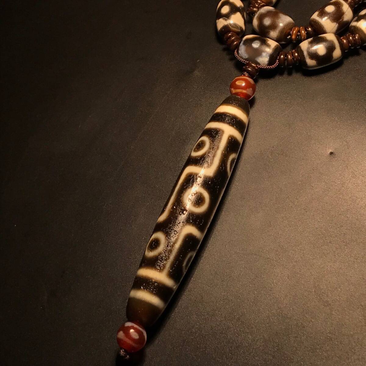 ▽鴻▽ 瑪瑙製 細密彫 三眼天珠 九眼天珠念珠ネックレス 置物 古賞物 中国古玩 中国古美術