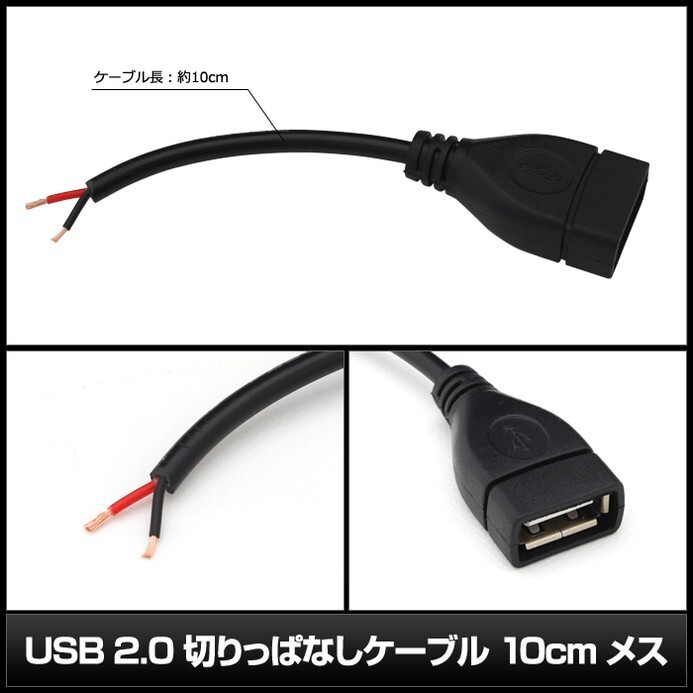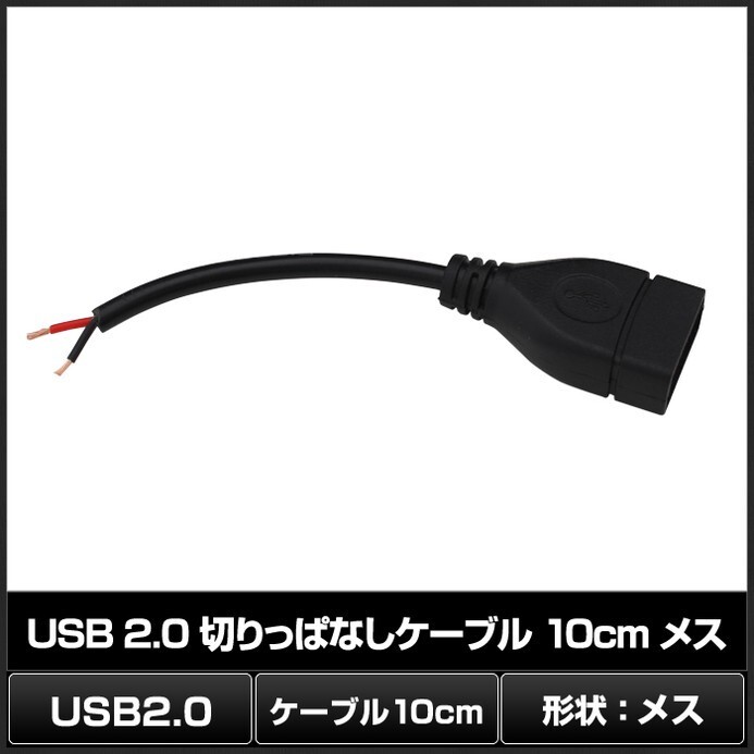 | USB Type-A 切りっぱなし 電源ケーブル 加工用 2線 電子工作 メス 10cm | 1本 |