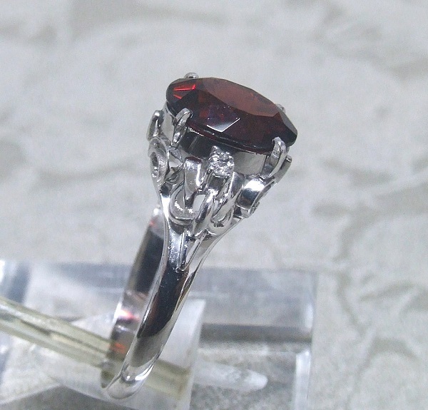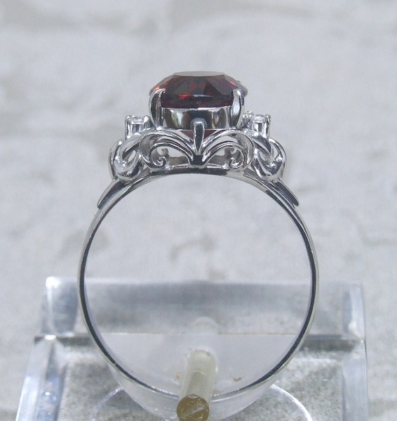 ■ 在庫大処分!超得プライス!★ Pt900 ガーネット リング ★ 指輪 ★ 天然メレダイヤ入り(0.20ct)◆