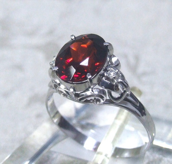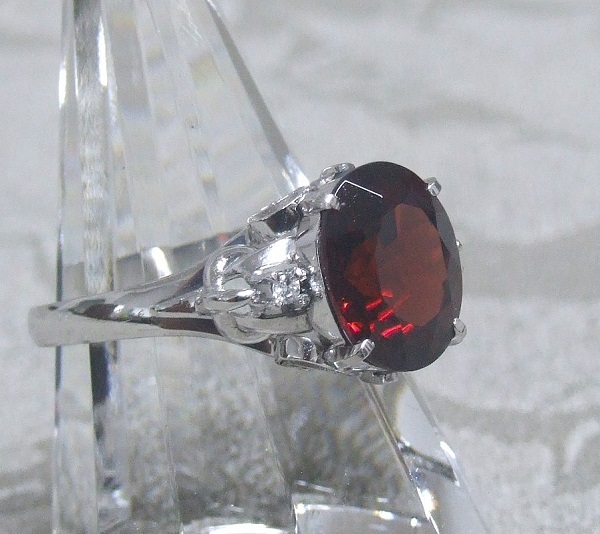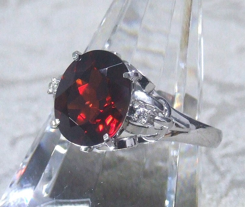 ◆ 在庫大処分!超得プライス!■ 深紅の輝き!★ ” ガーネット ” ◆ Pt900台 ◆ 天然メレダイヤ入り(0.20ct)◆ 指輪 ◆