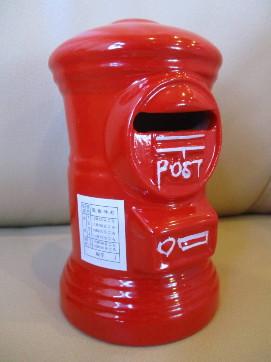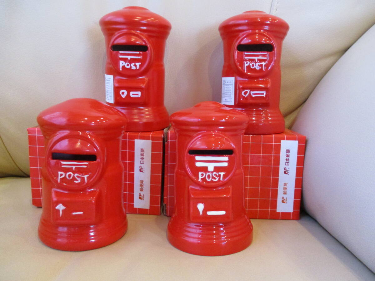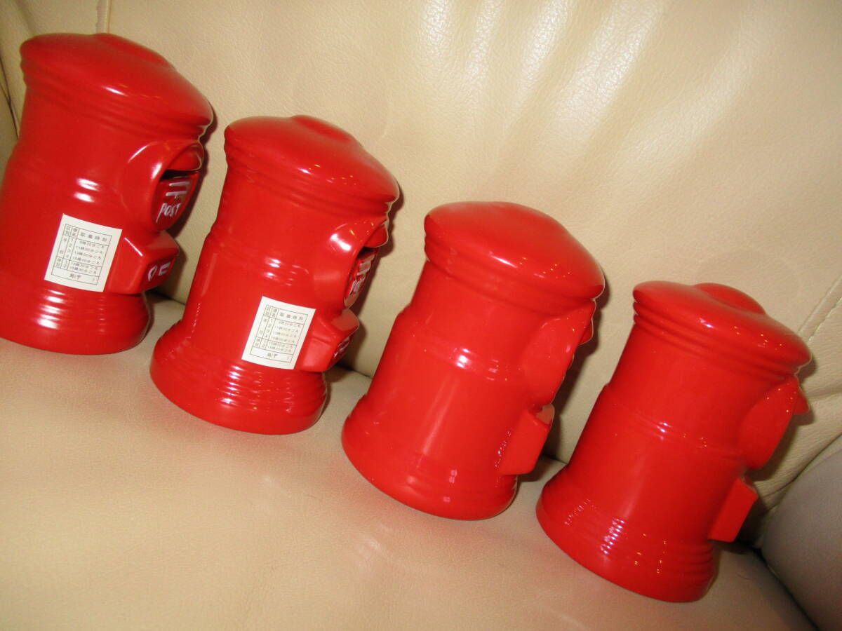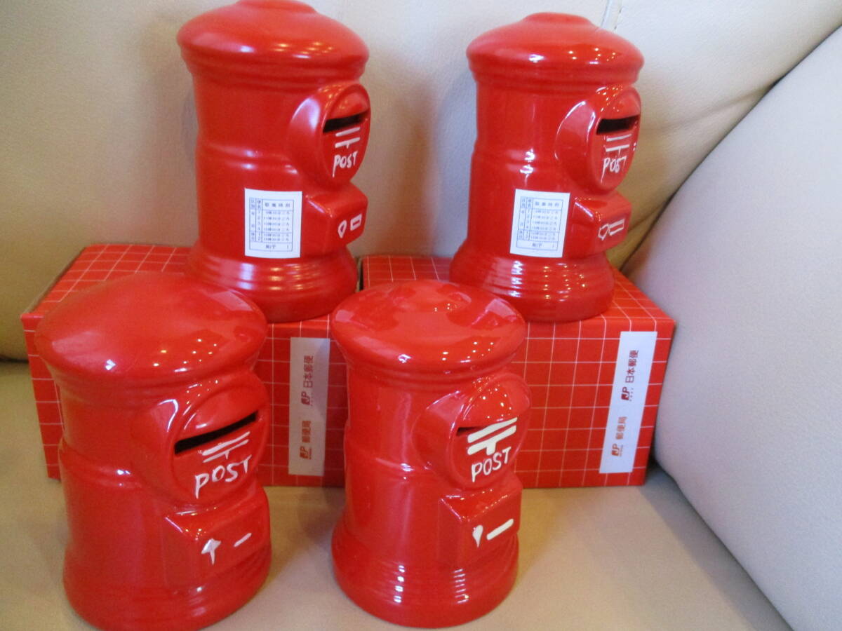 ■新品含む・計、4個セット【 郵便ポスト★貯金箱/赤色 円柱型】コレクション インテリア 陶器 置物 JP 郵便局 日本郵便 景品